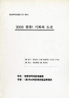 개최일 2004. 11. 24(수) 09:30 - 25(목) 장소 하이야트 호텔 리젠시룸 및 각 분과 회의룸 주최 아시아문화산업교류재단(주관)(사)문화산업포럼, 독립제작사협회, 영화진흥위원회, 음반산업협회, 애니메이션제작자협회 내용 ◈ 패널구성 : 43명 * 해외초청 연사 및 패널 : 23명(프랑스, 중국, 일본, 베트남, 태국, 말레이시아, 인도네시아 등) * 국내초청 연사 및 패널 : 20명 ◈ 분과 구성 - 방송/TV 분과 (주관: 독립제작사협회) • 한, 중, 일 3국을 중심으로 아시아 지역의 방송분야 협력 방안에 대해 논의 - 대중음악 분과 (주관: 음반산업협회) • 아시아 대중음악의 공동 발전방안, 저작권 보호 방안 등에 대해 논의 - 애니메이션 분과 (주관: 애니메이션제작자협회) • 한-중 애니메이션 협력방안 논의 - 영화 분과 : (주관: 영화진흥위원회) • 아시아 영화시장 현황과 아시아 영상문화산업 네트워크 구축 방안 논의 국내외 문화산업 현황에 대한 정보 교환 및 아시아 지역 문화산업의 협력 가능성을 모색하고, 아시아 문화산업계 인적 네트워크 구축을 통해 아시아문화산업 발전에 기여하기 위해 개최하는 포럼. 아시아 7개국 23인, 국내 20인의 문화산업계 리더가 모여 향후 아시아 문화산업의 협력방안에 대해 논의. 유럽 EURIMAGE의 사례발표를 통해 아시아 지역에서도 유럽과 같은 협력방안을 모색해야겠다는 뜻을 모았고, 공동선언문을 채택하여 일회성이 아니라 중장기적 비전을 가진 내실 있는 포럼으로 발전할 수 있는 계기를 마련함.