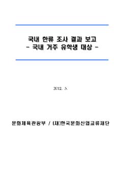 2012 한류 및 한국 이미지 실태조사 결과보고서(제1차): 국내거주유학생