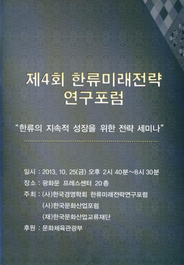 제4회 한류미래전략 연구포럼 한류의 지속적 성장을 위한 전략 세미나