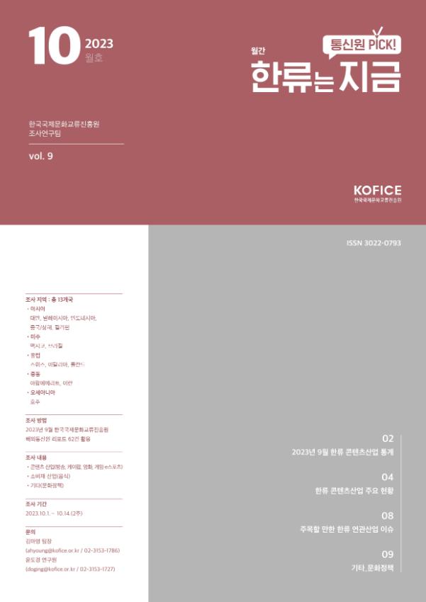 · 2023년 9월 한국국제문화교류진흥원 해외통신원 리포트 62건 활용
