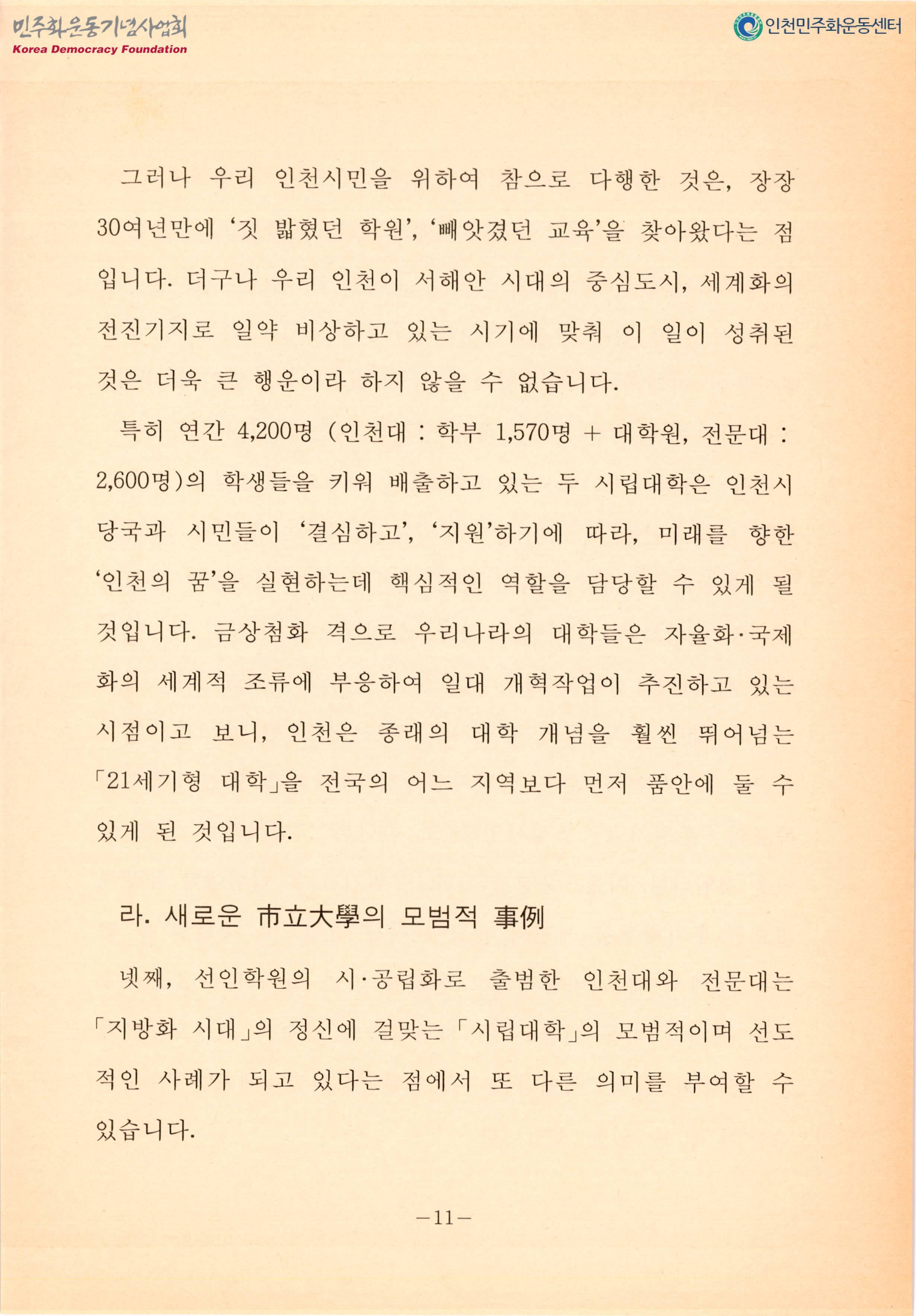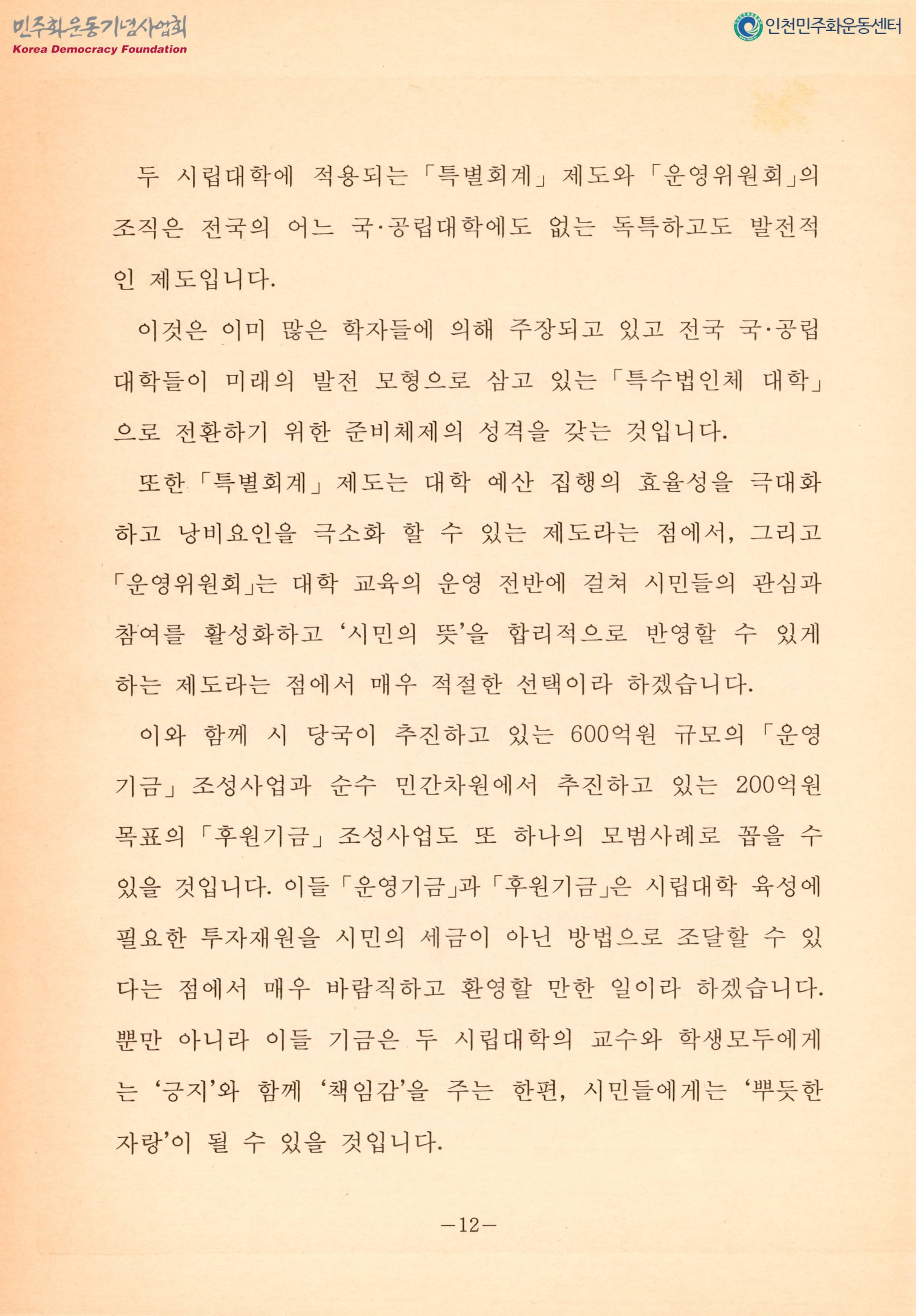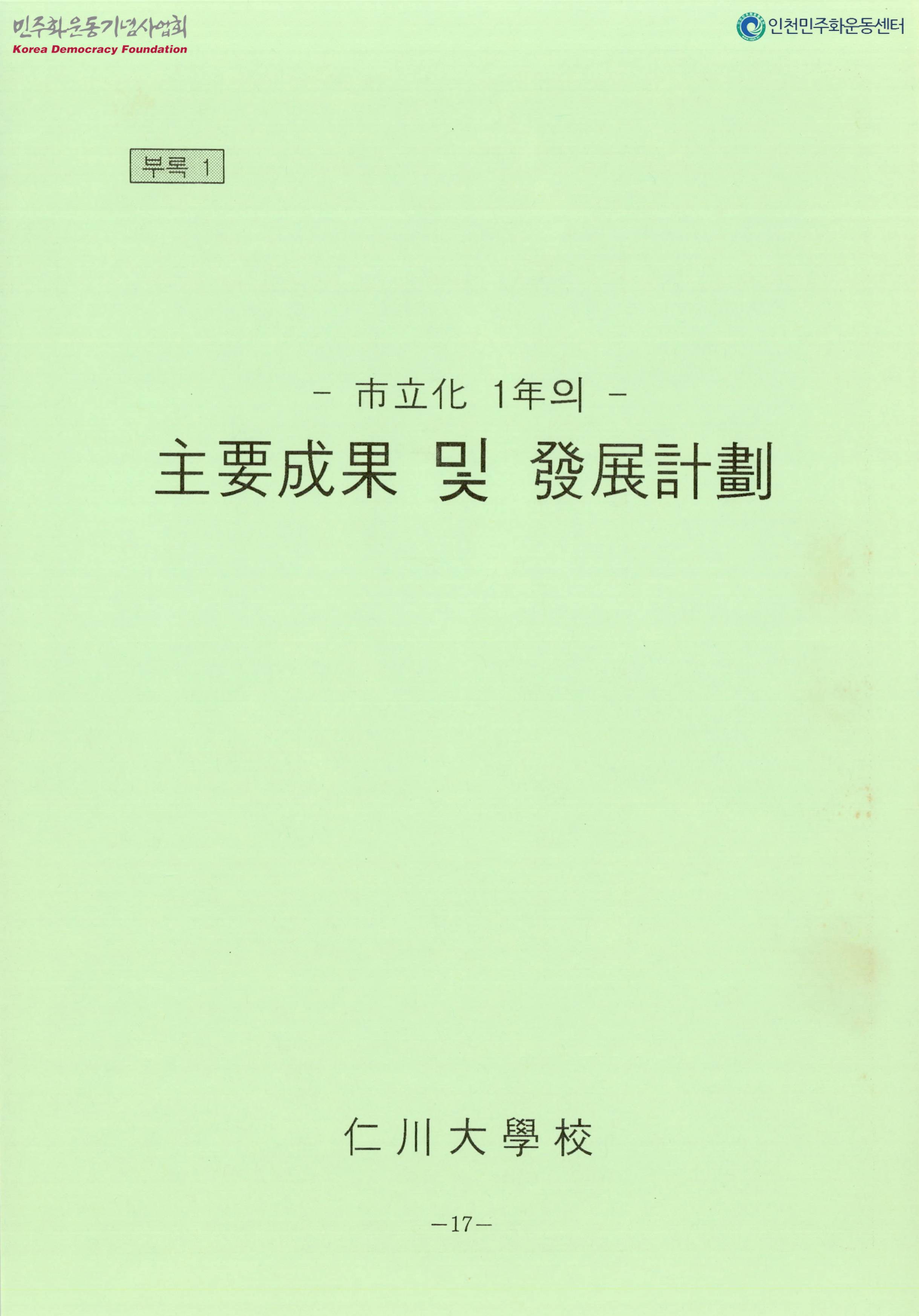 내용: 자료집. 기념사. 시립대학 출범의 의의 와 그 성과. 시립화 1년의 주요성과 및 발전계획.