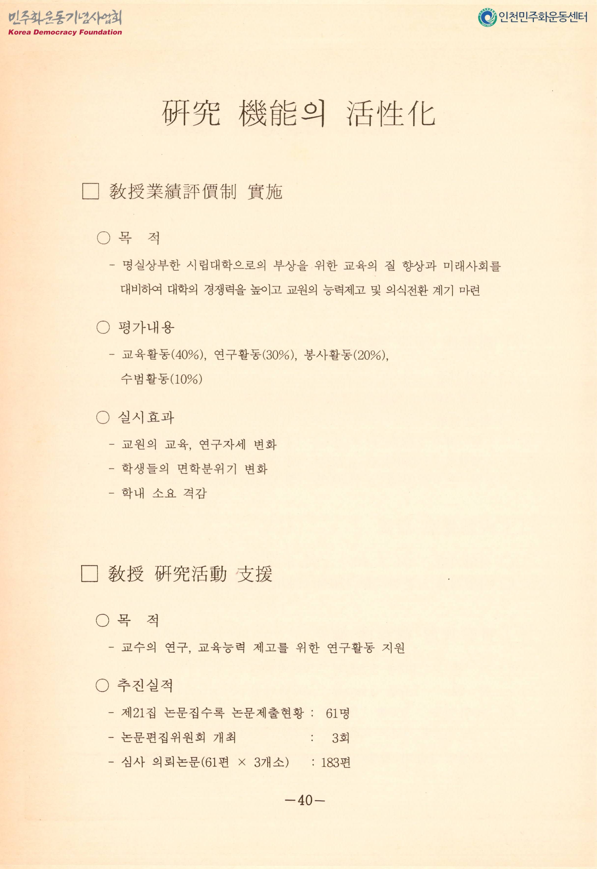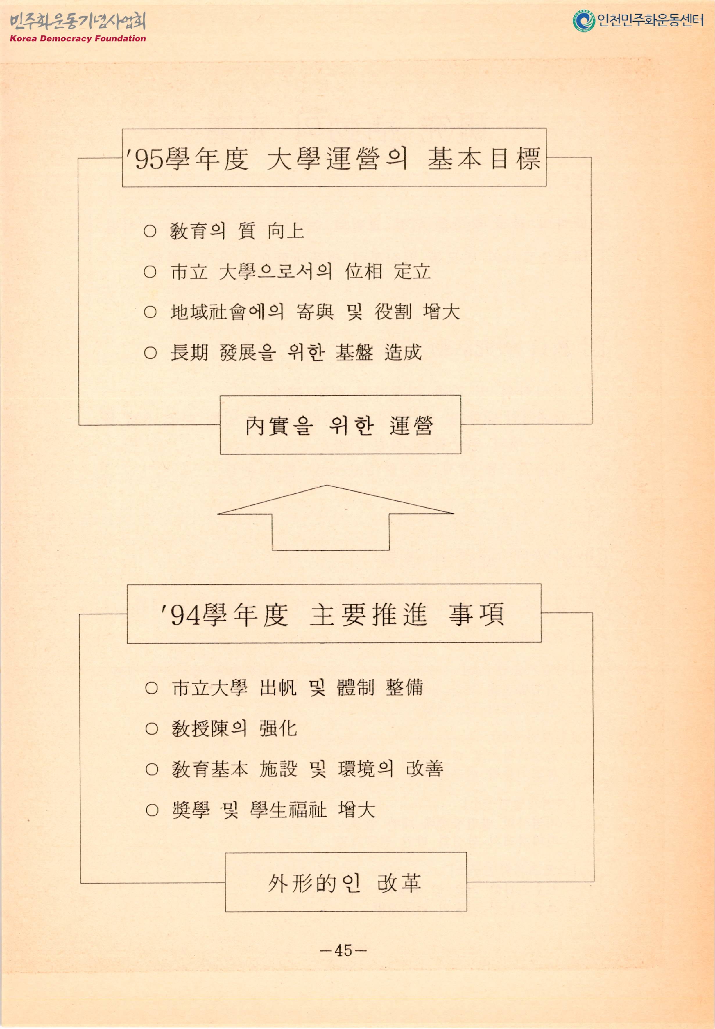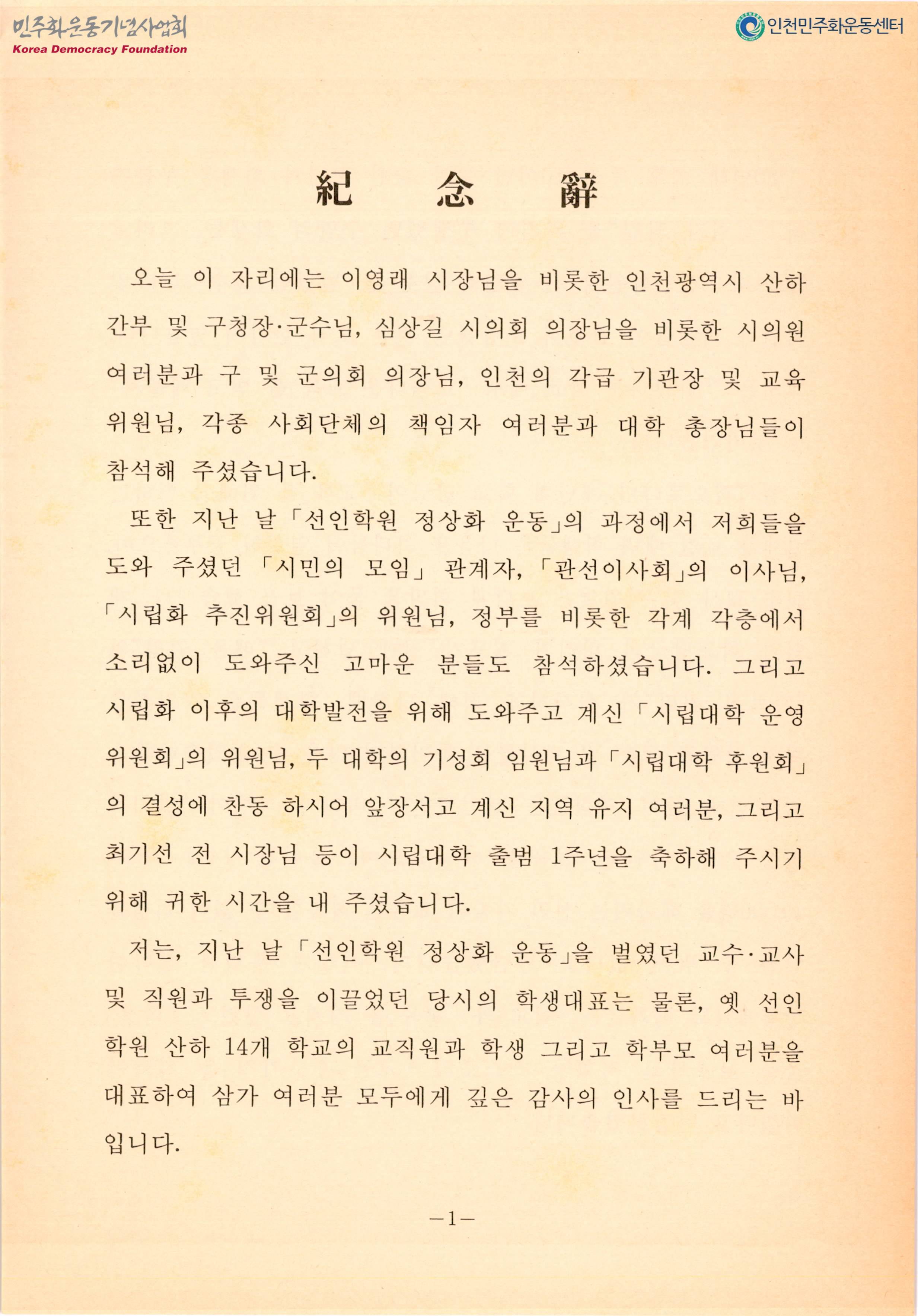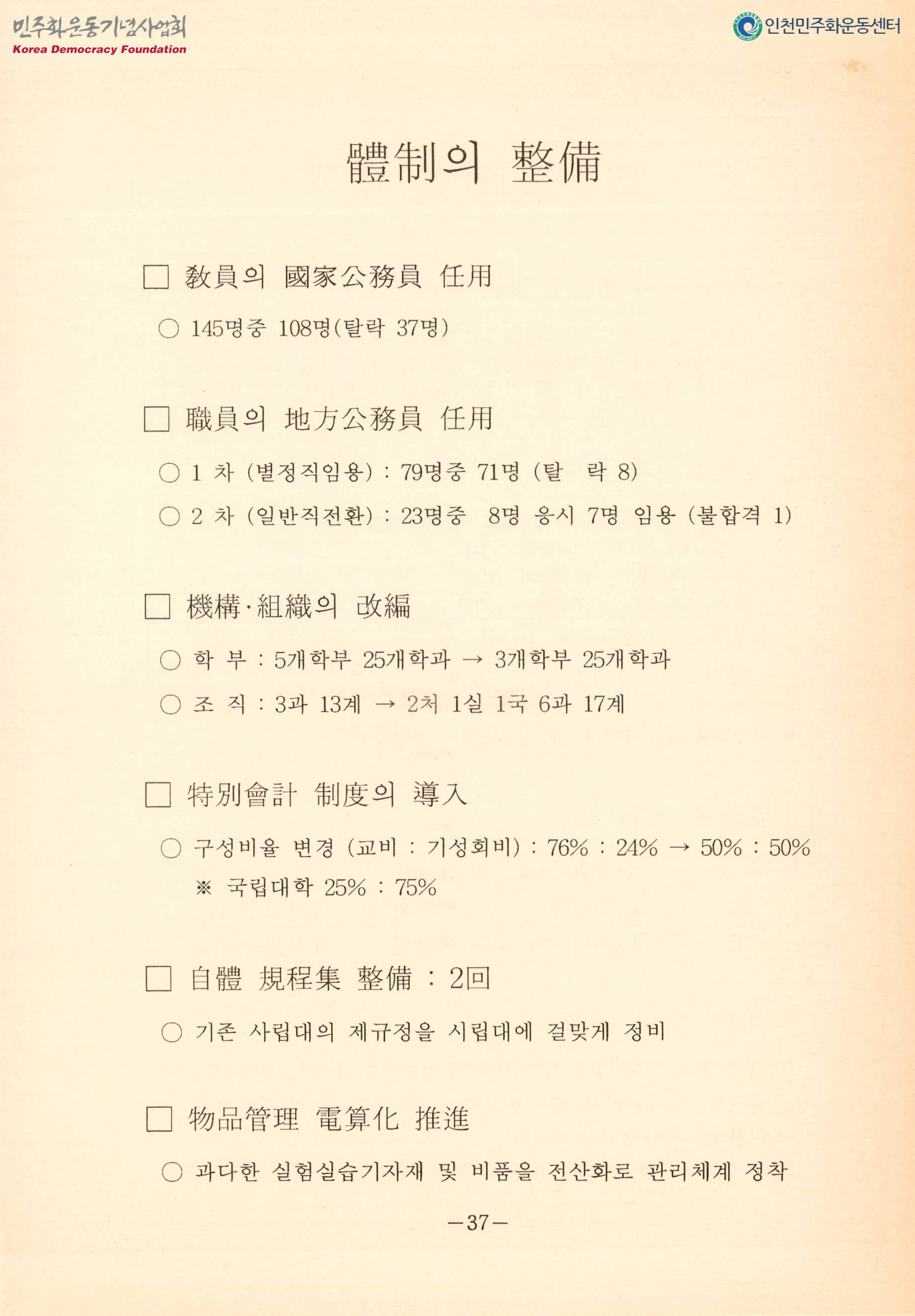 내용: 자료집. 기념사. 시립대학 출범의 의의 와 그 성과. 시립화 1년의 주요성과 및 발전계획.