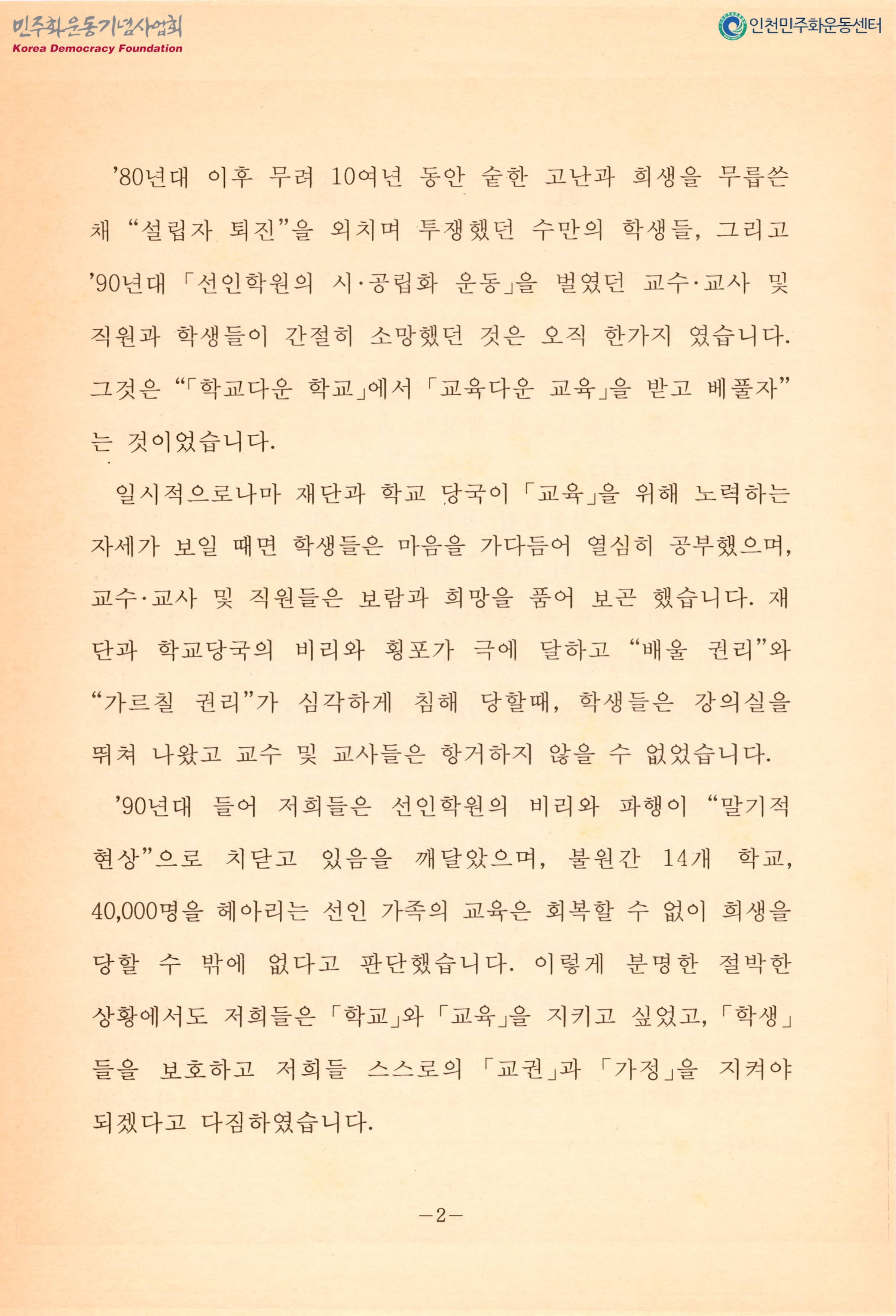 선인학원 국공립화 청원 인천시민 10만 서명을 위한 제1차 가두서명운동 지침서