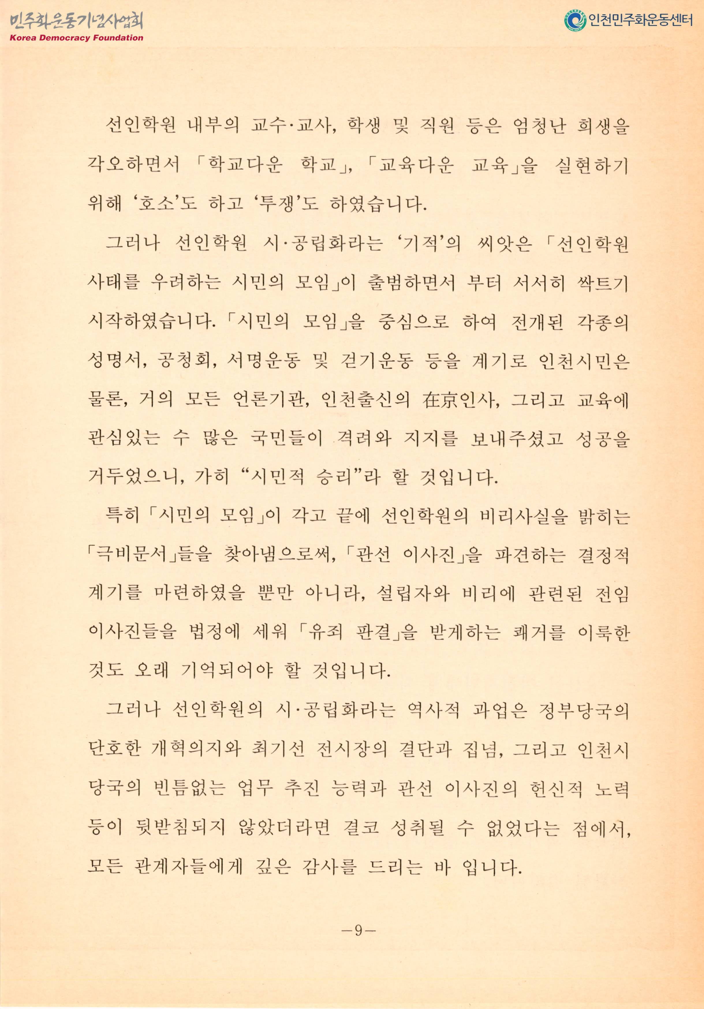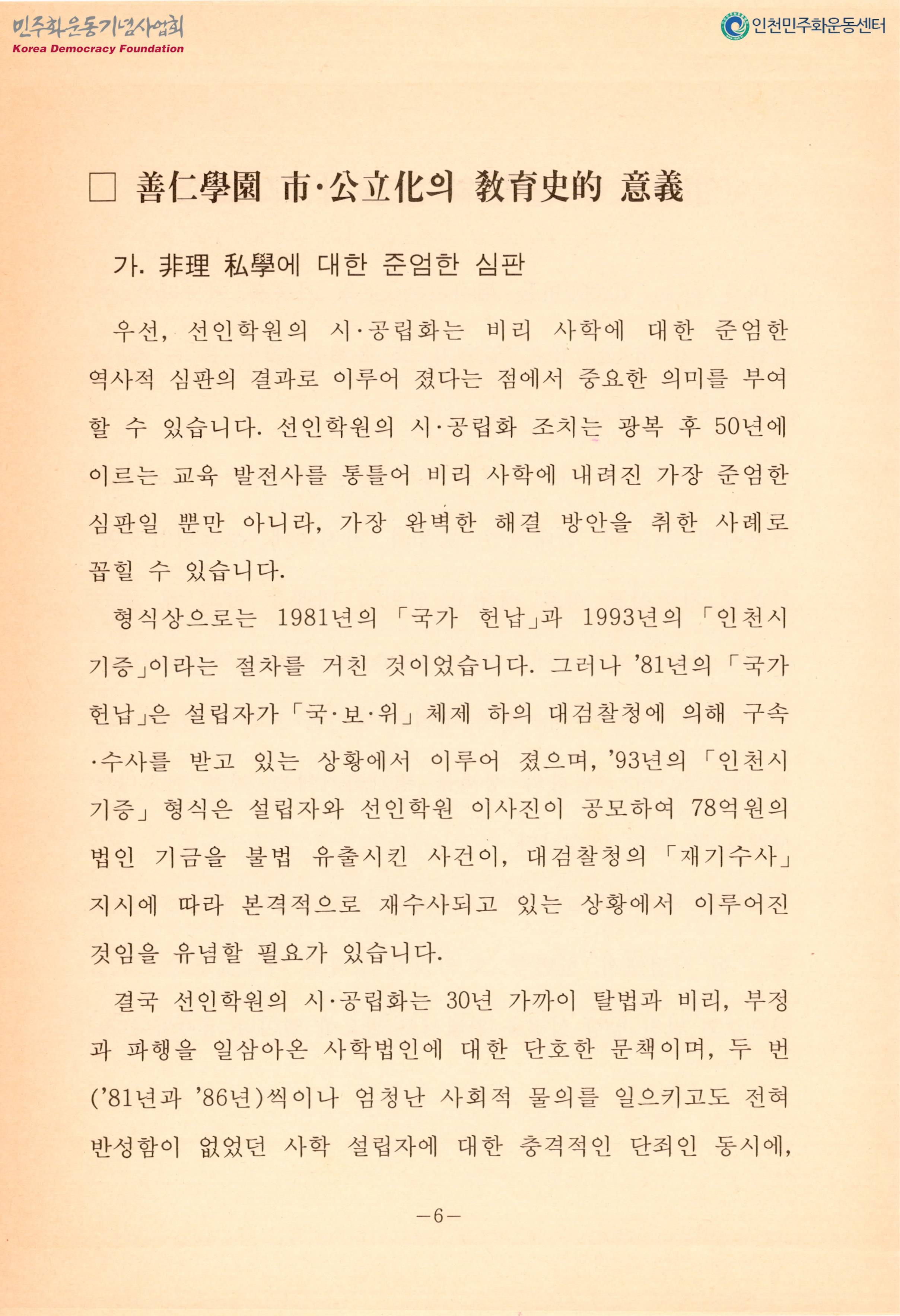 선인학원의 근본적 문제점은 백인엽씨의 불법 부당한 간섭을 민자당 정권이 묵인하였기 때문이다.