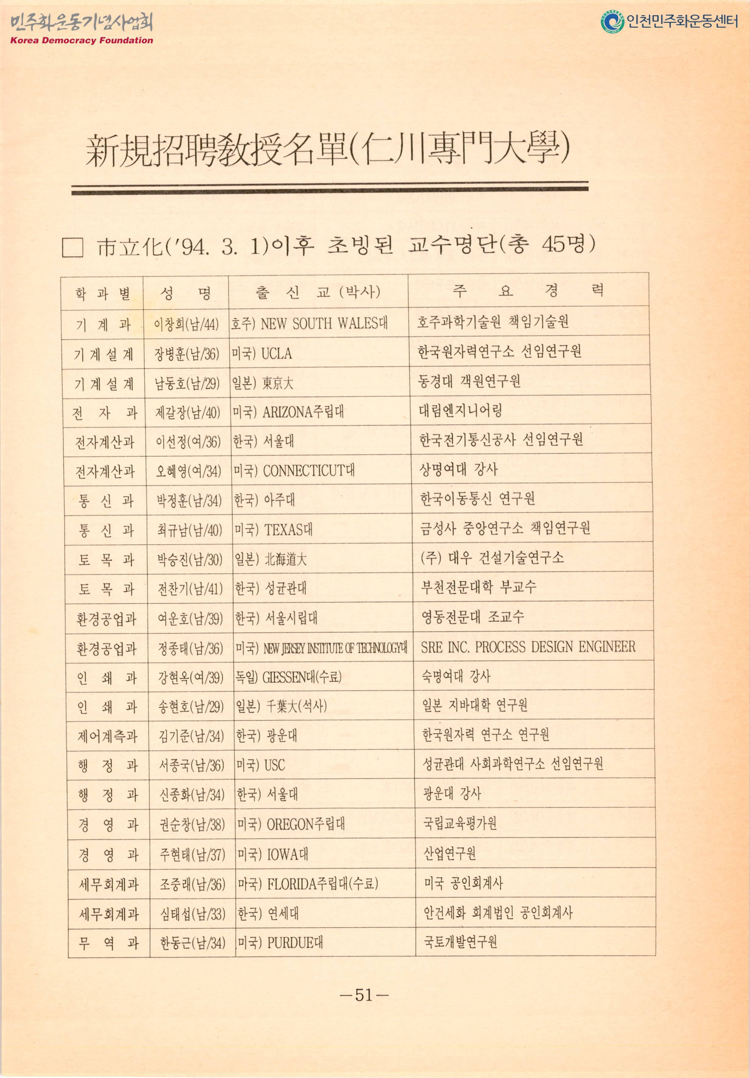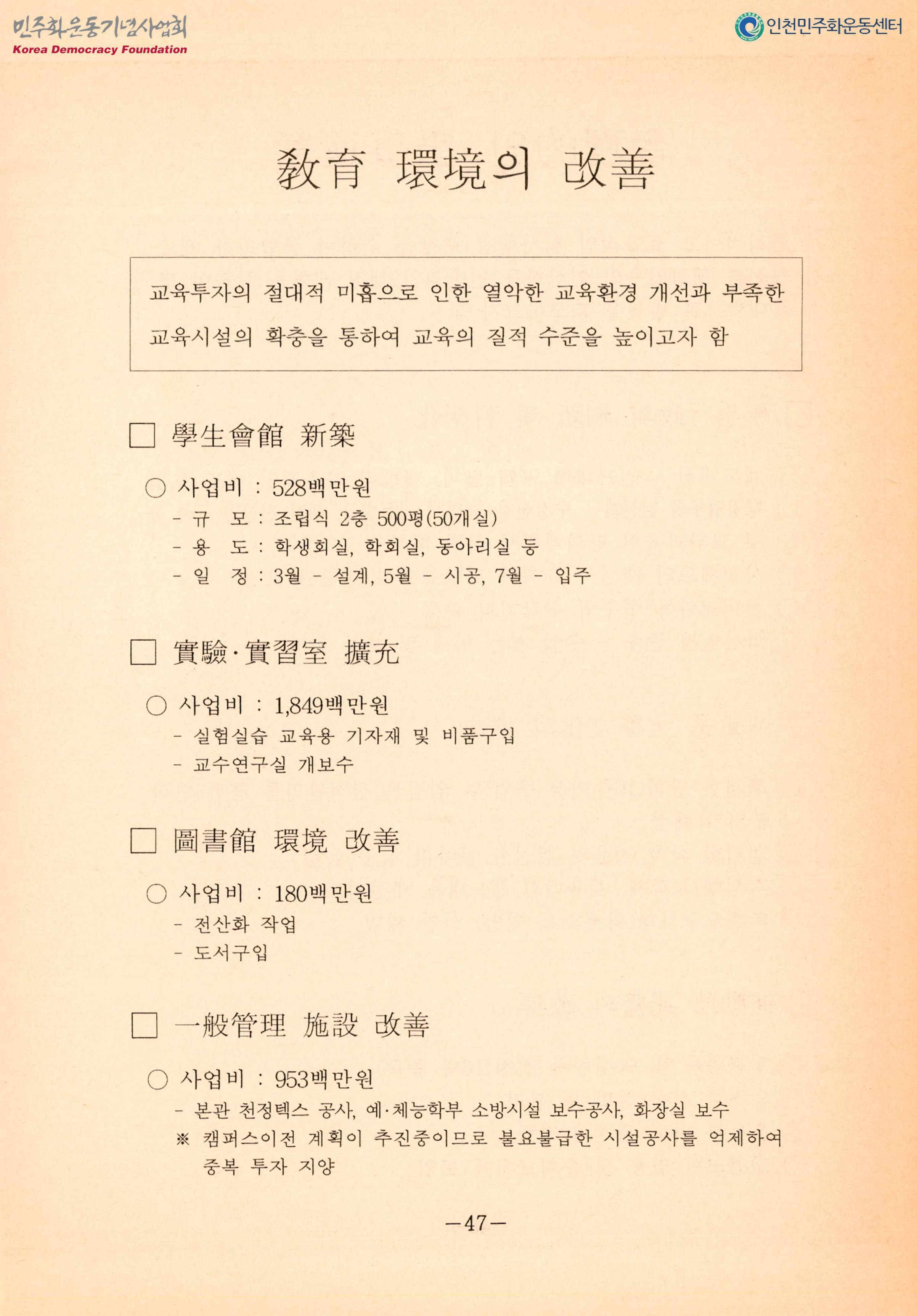 경인여대 학원민주화 정착을 위한 인천시민대책위원회 집행위원회 47차 회의