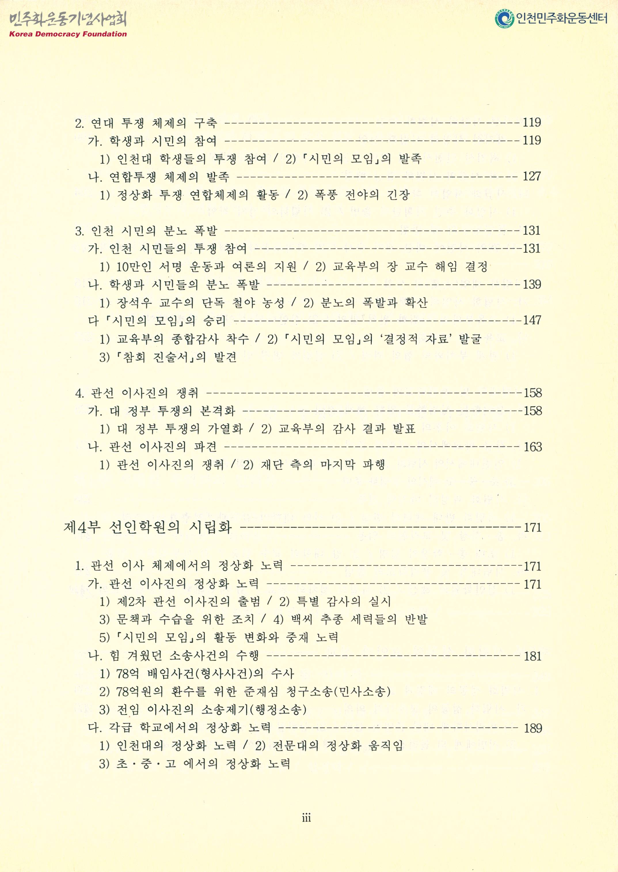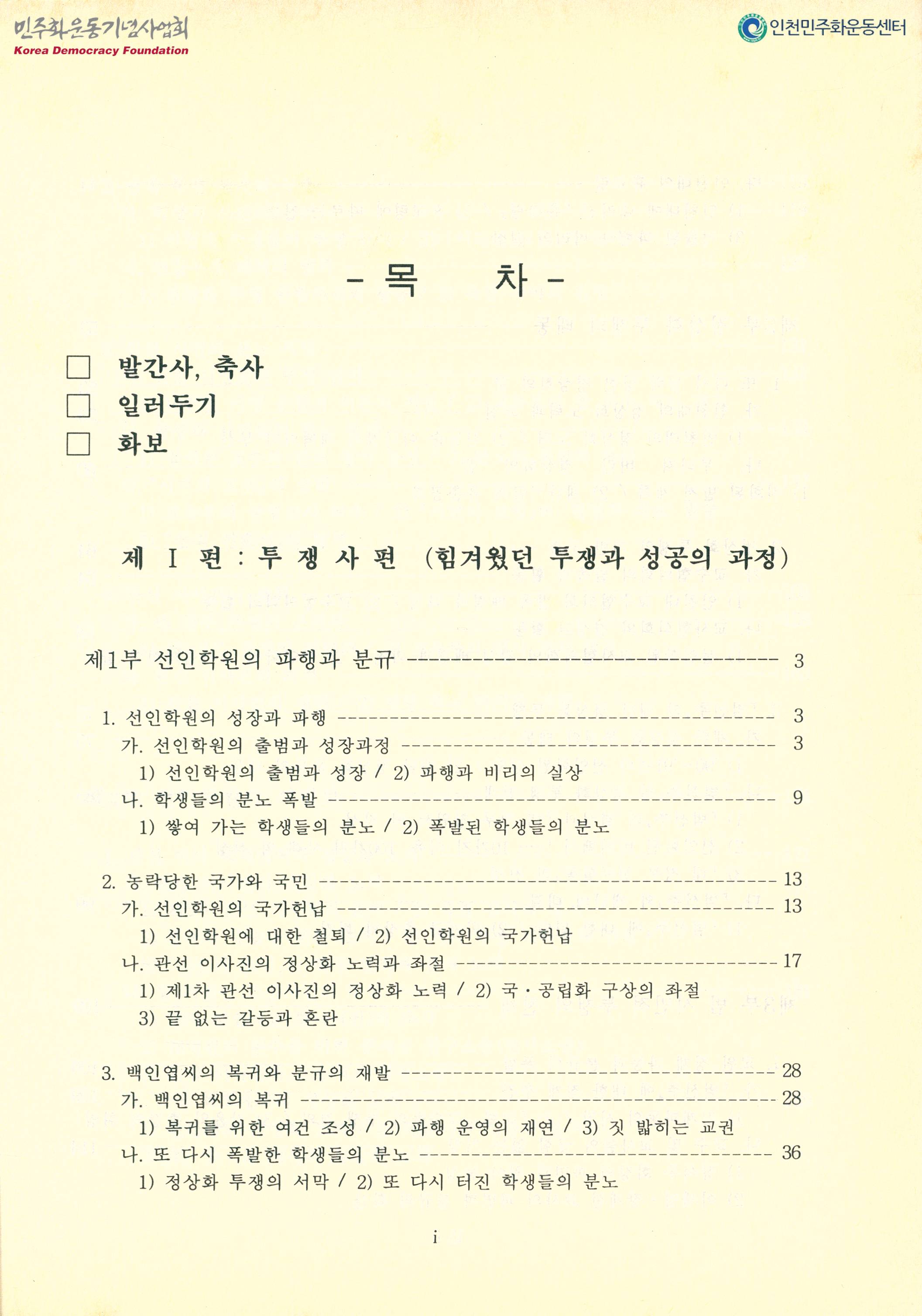 박스번호: G035 목록번호: 140623004 내용: 책. 발간사,축사. 일러두기. 화보. 1투쟁사편 2증언편(투쟁과 성공의 뒷 이야기들) 3자료편(잊혀질 수 없는, 소중한 자료들)