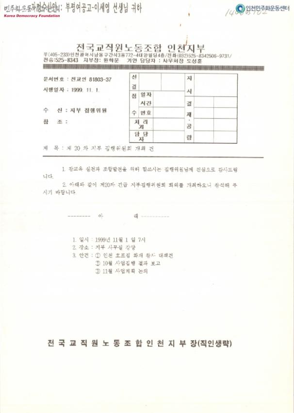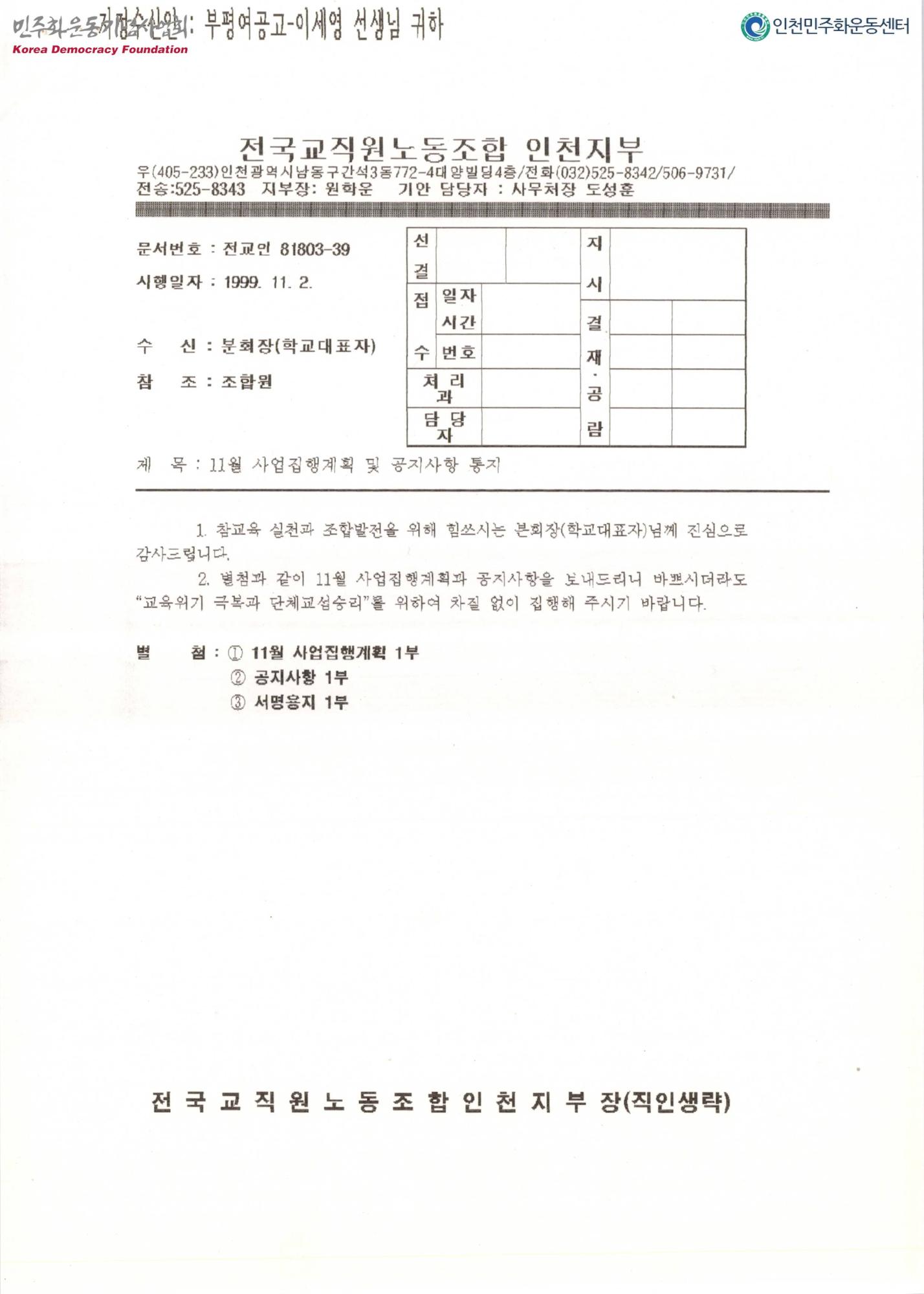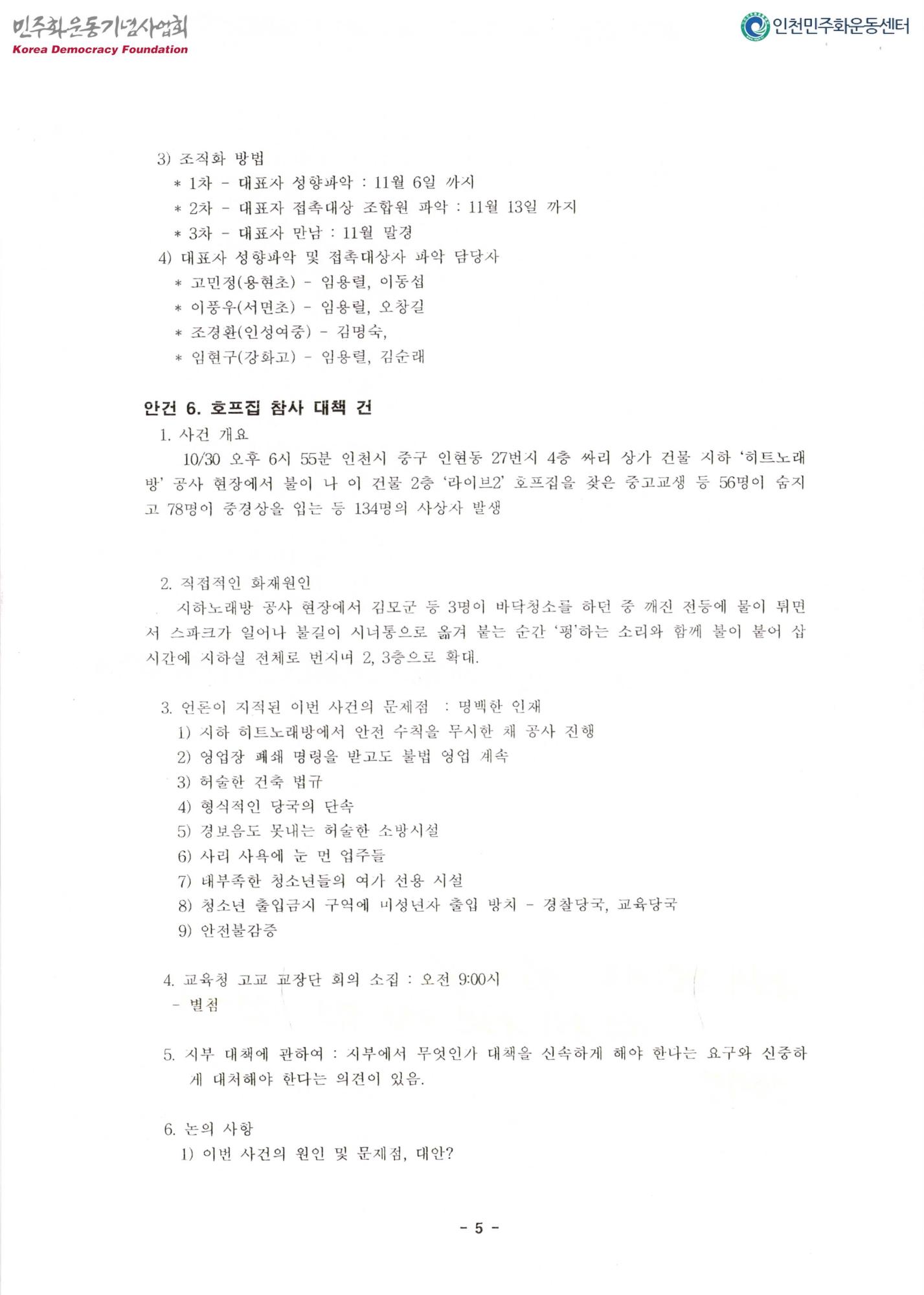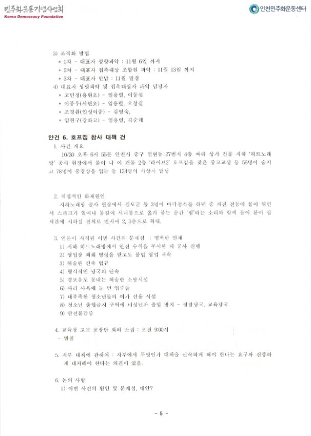 박스번호: F026 목록번호: 140605102 내용: 10월사업.분회장대회계획.모범분회시상식.호프집 참사대책건.사망자명단.지부대의원선출기준