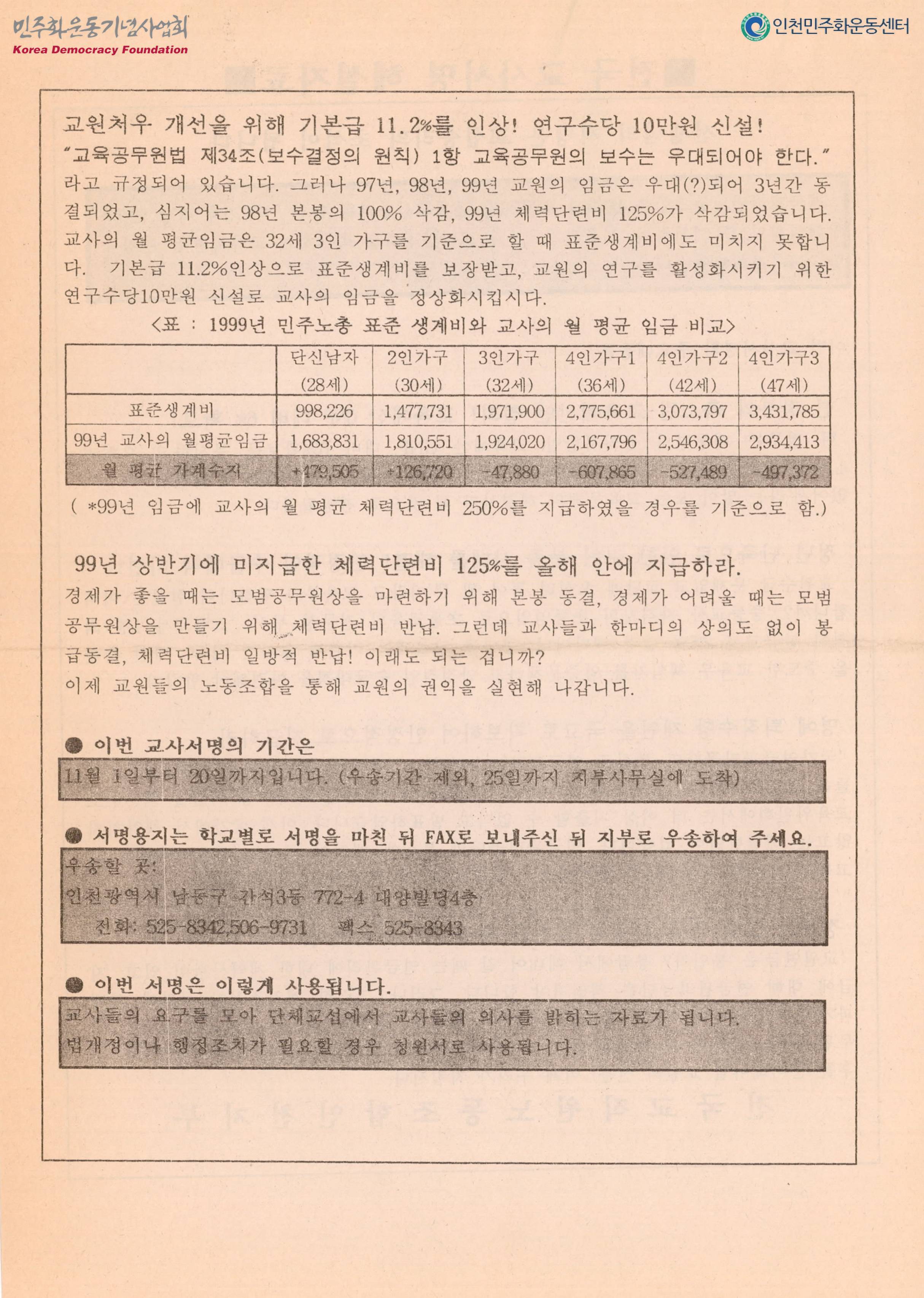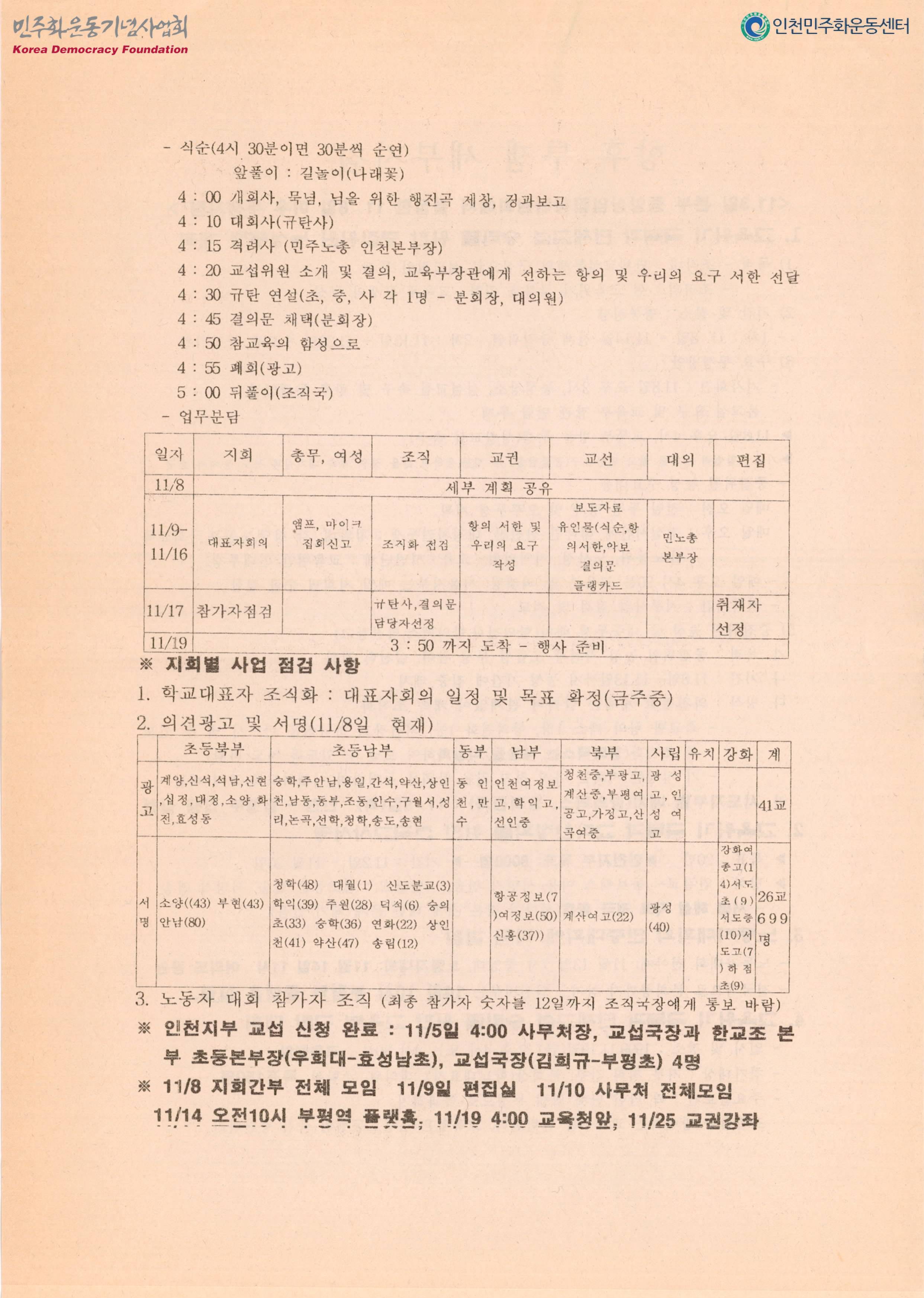 참교육실현과 해직교사돕기 인천시민걷기대회에 참가합시다
