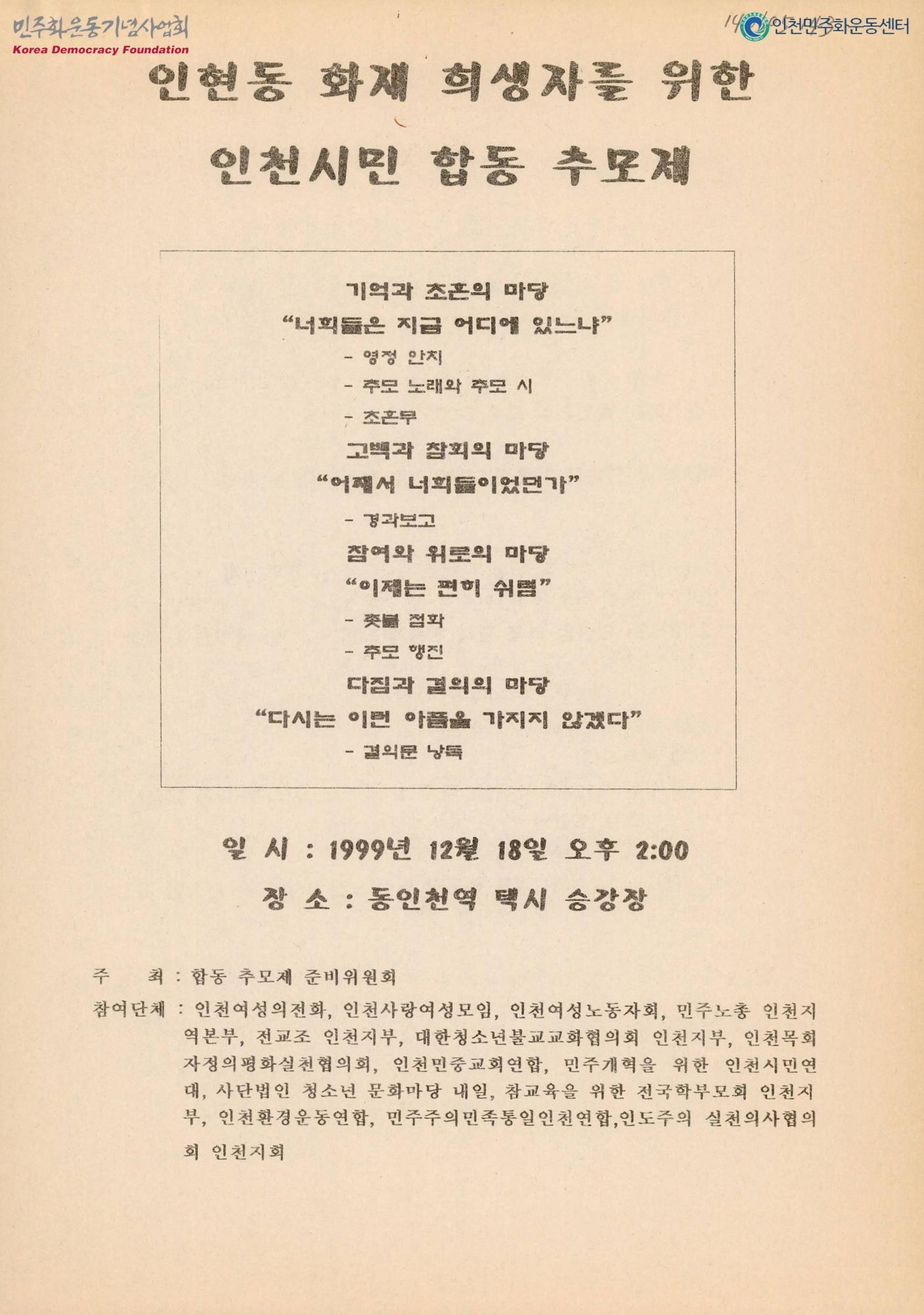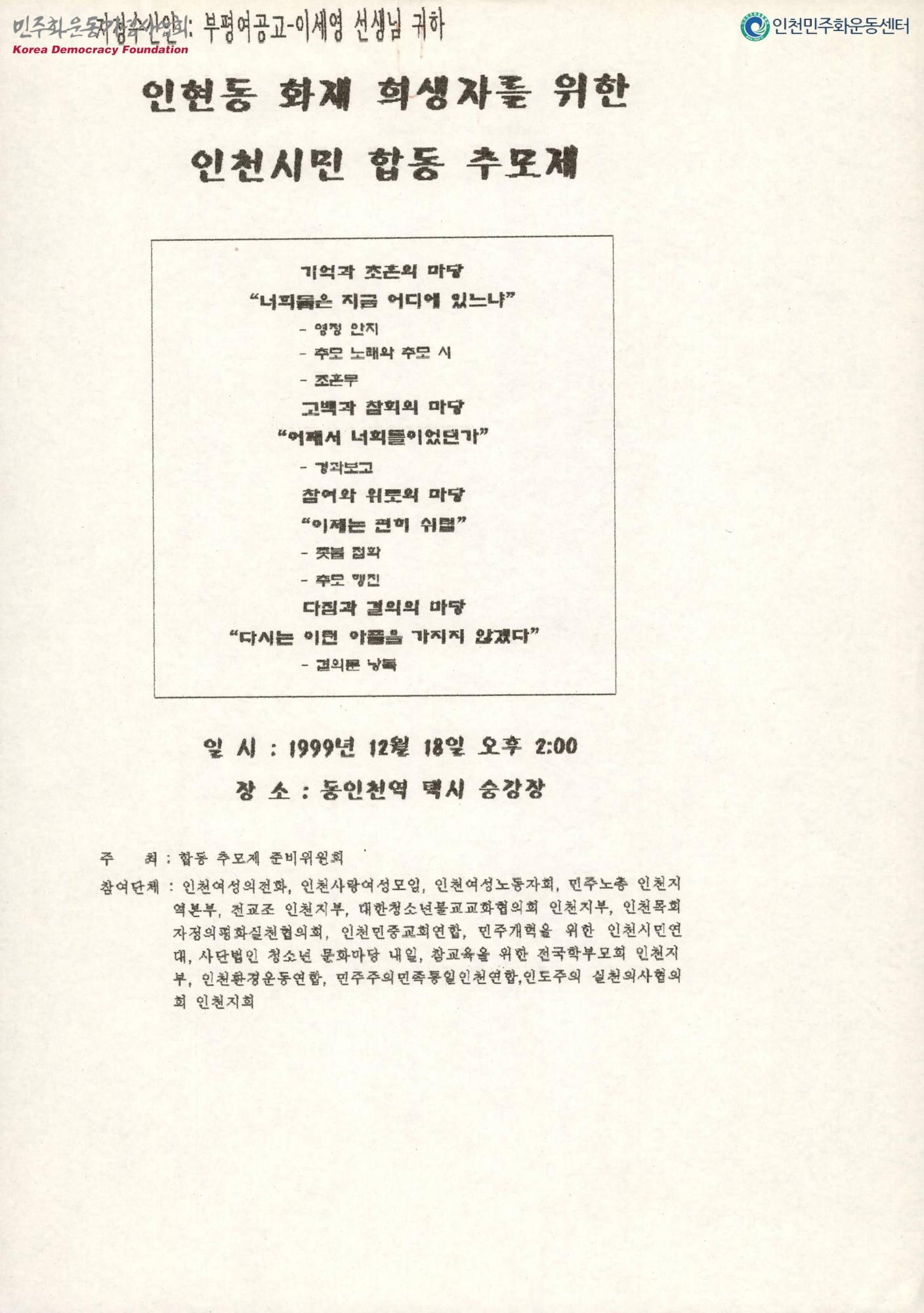 인현동 화재 희생자를 위한 인천시민합동추모제