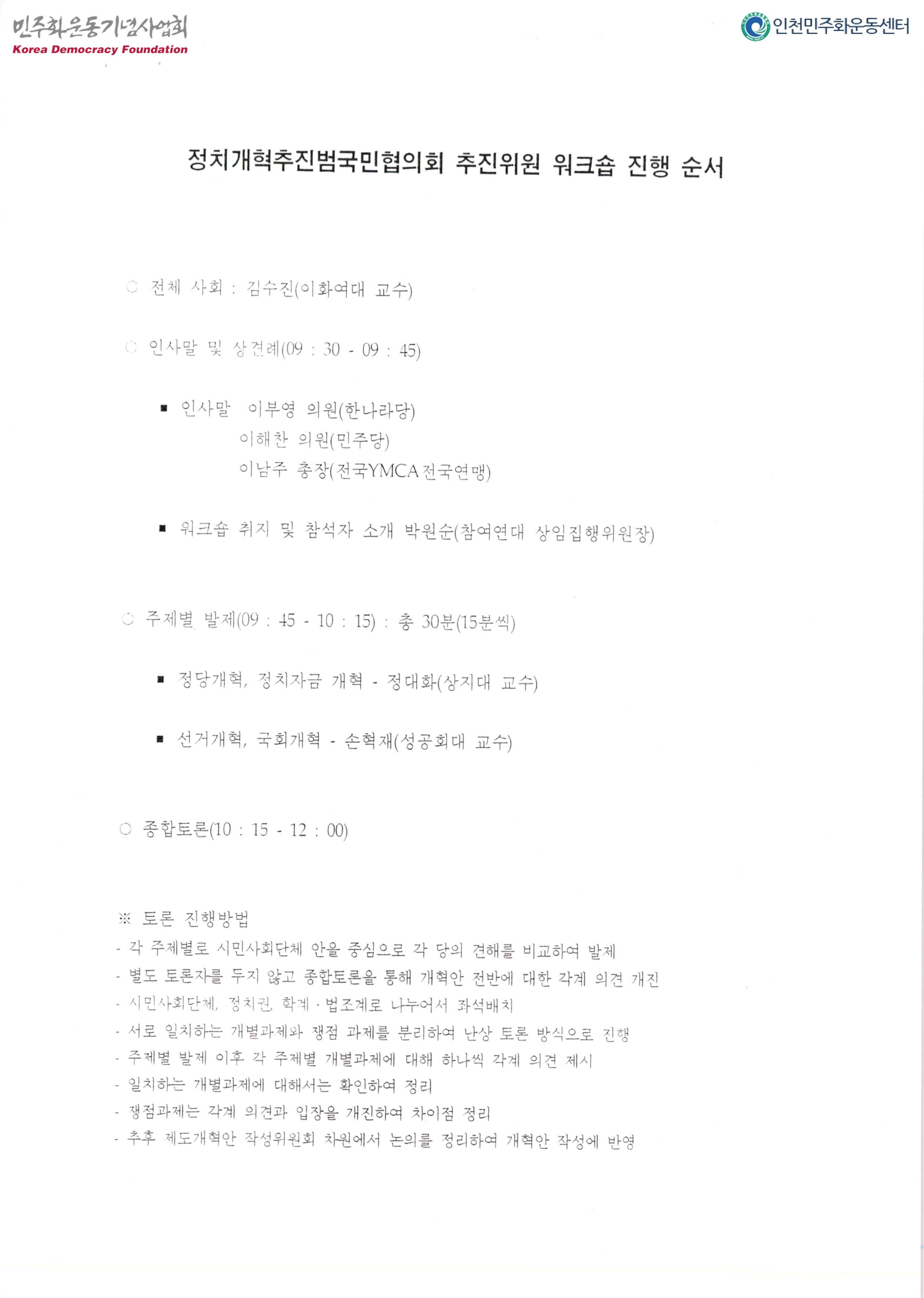 정치개혁 추진 범국민협의회 추진위원 워크숍