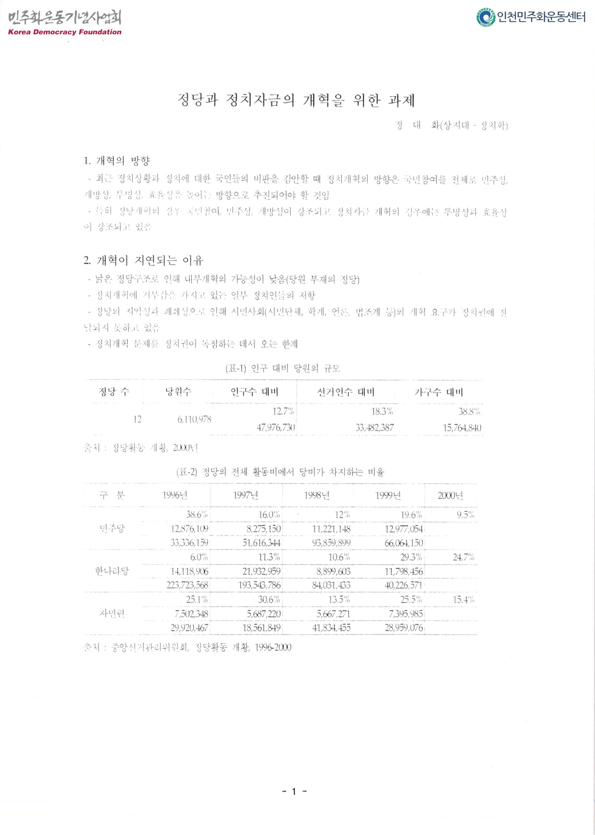 내용: 진행순서.정당과정치자금개혁을 위한 과제(정대화).정치개혁방향(손혁재)