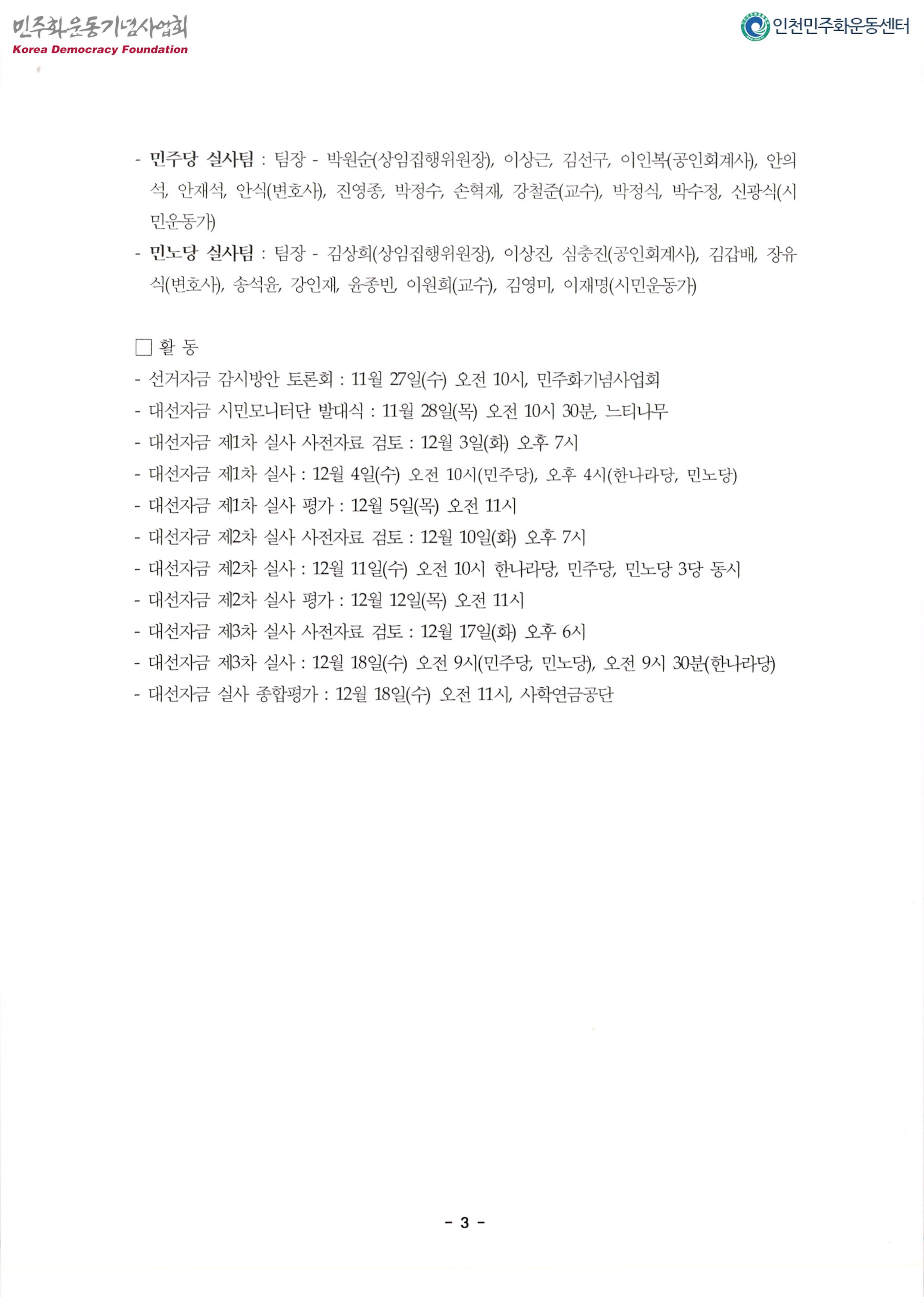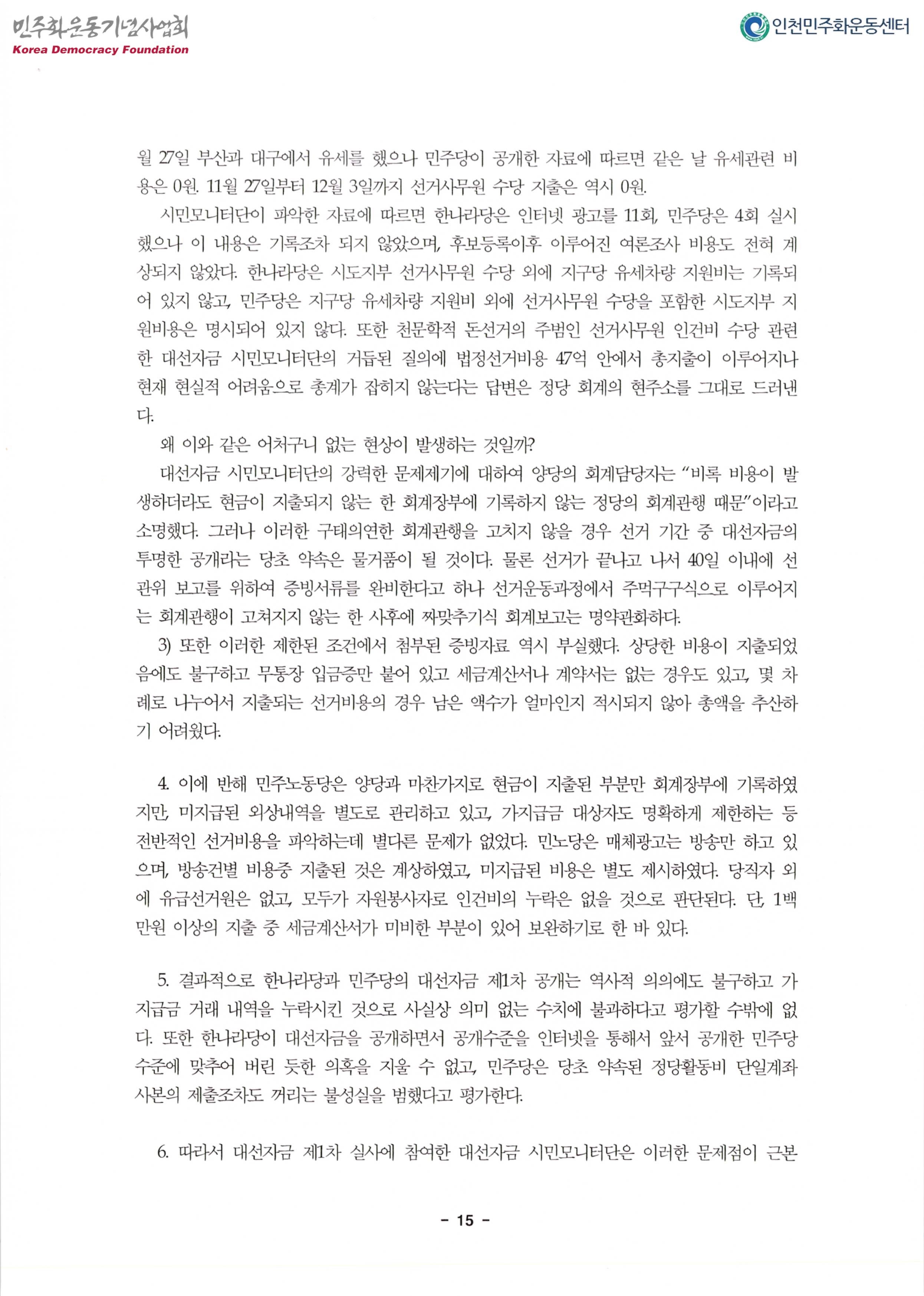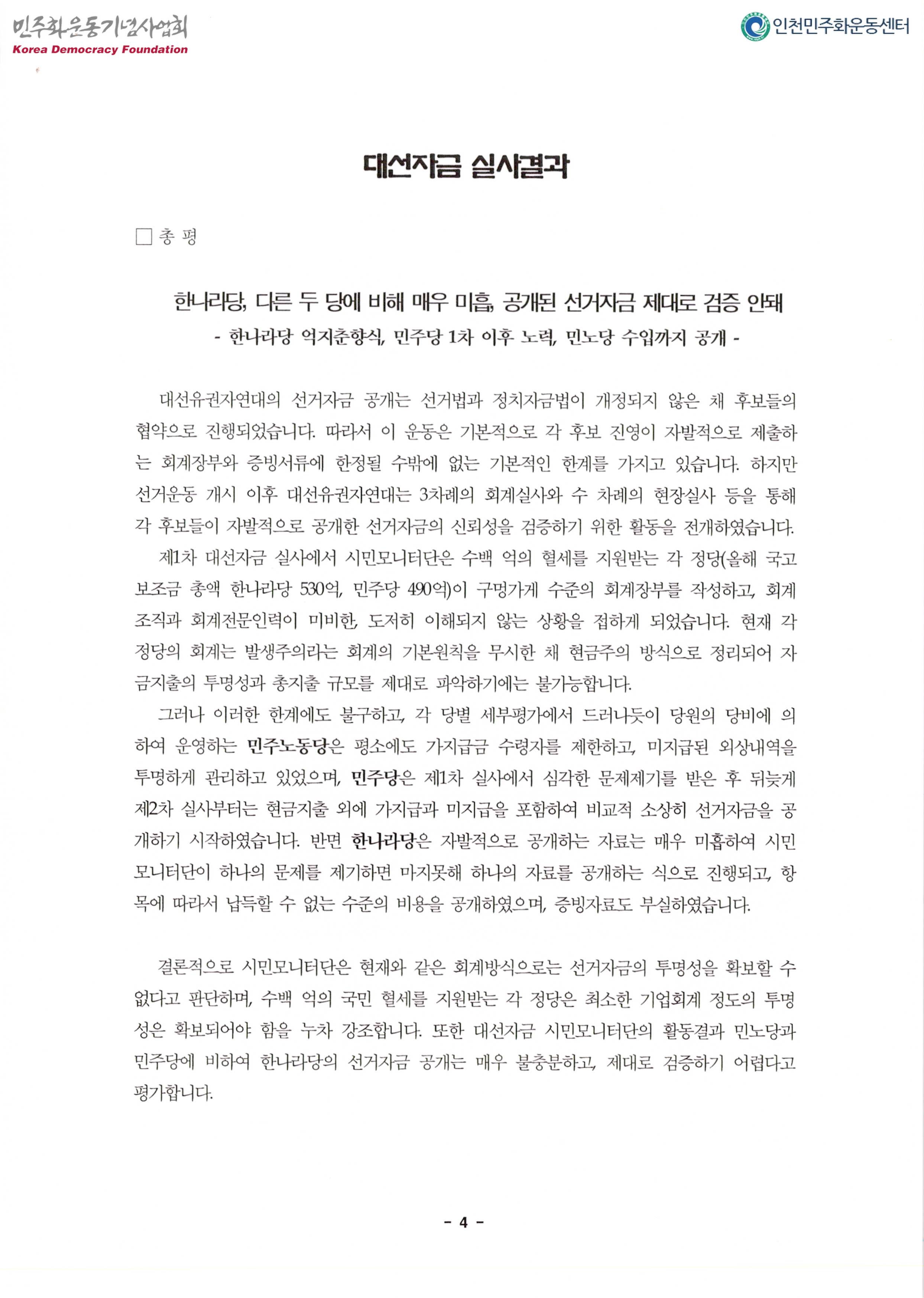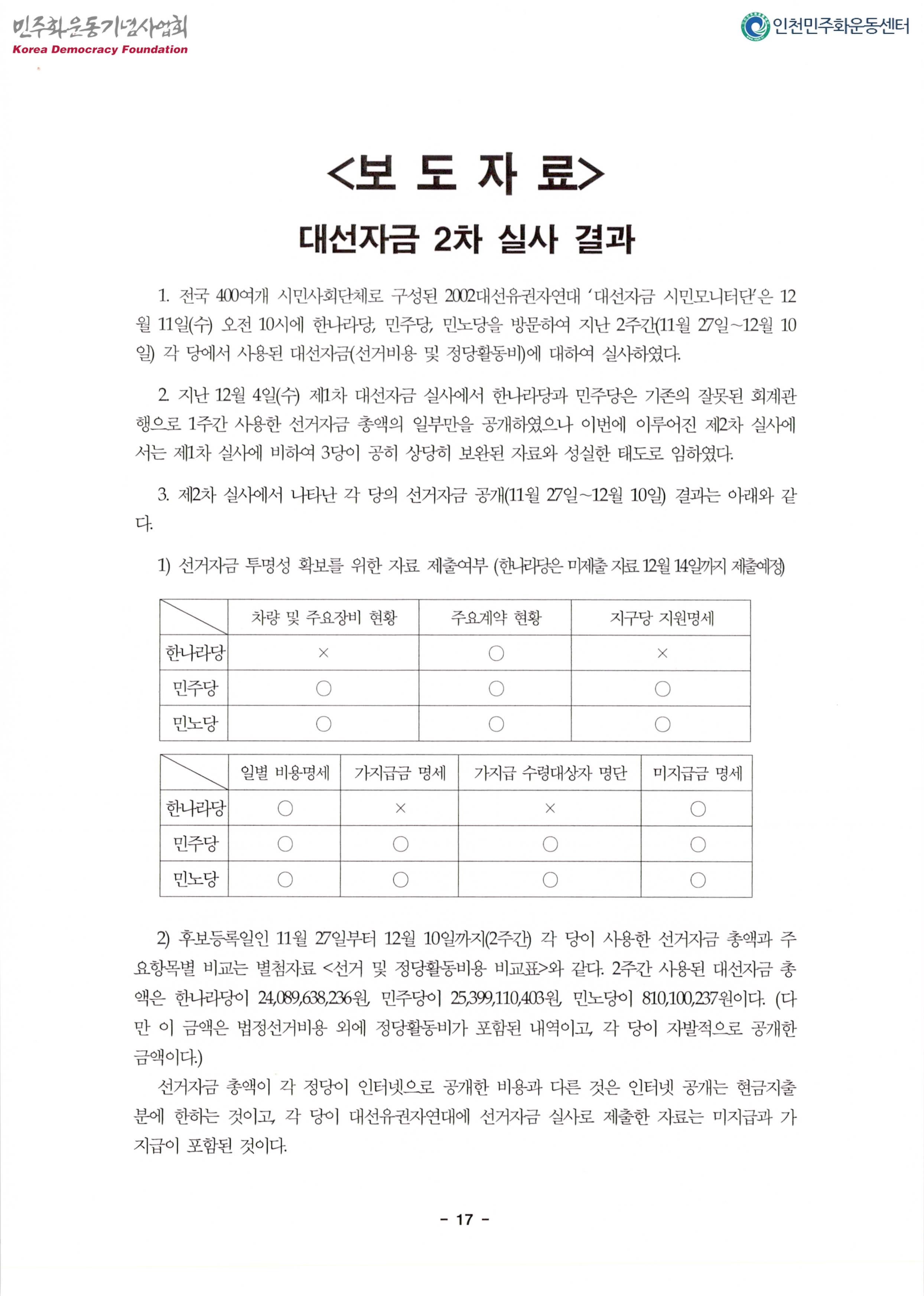 내용: 대선자금시민모니터단활동,결과발표.대선자금투명성확보를 위한 요구,활동계획