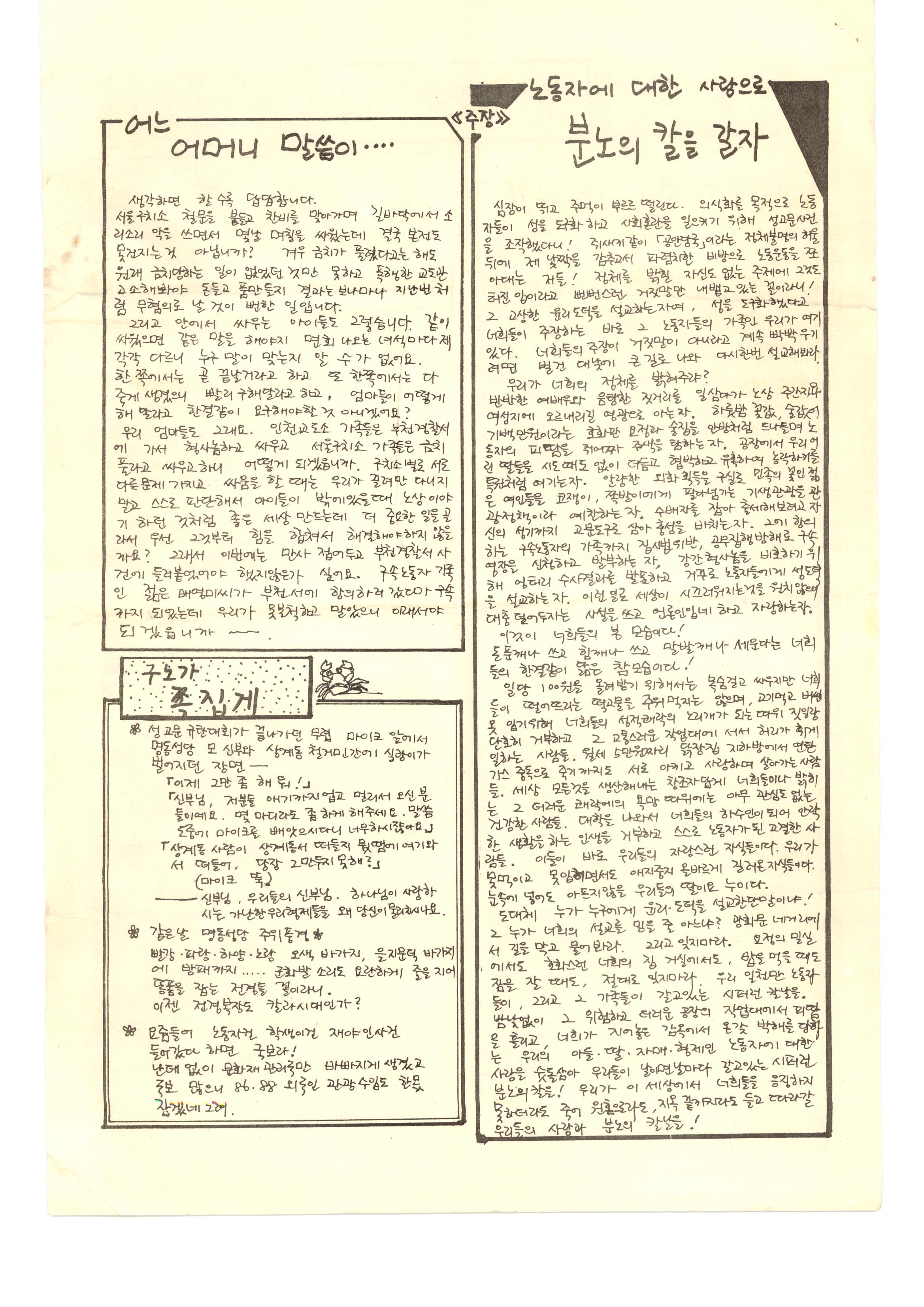 노동자에 대한 사랑으로 분노의 칼을 갈자