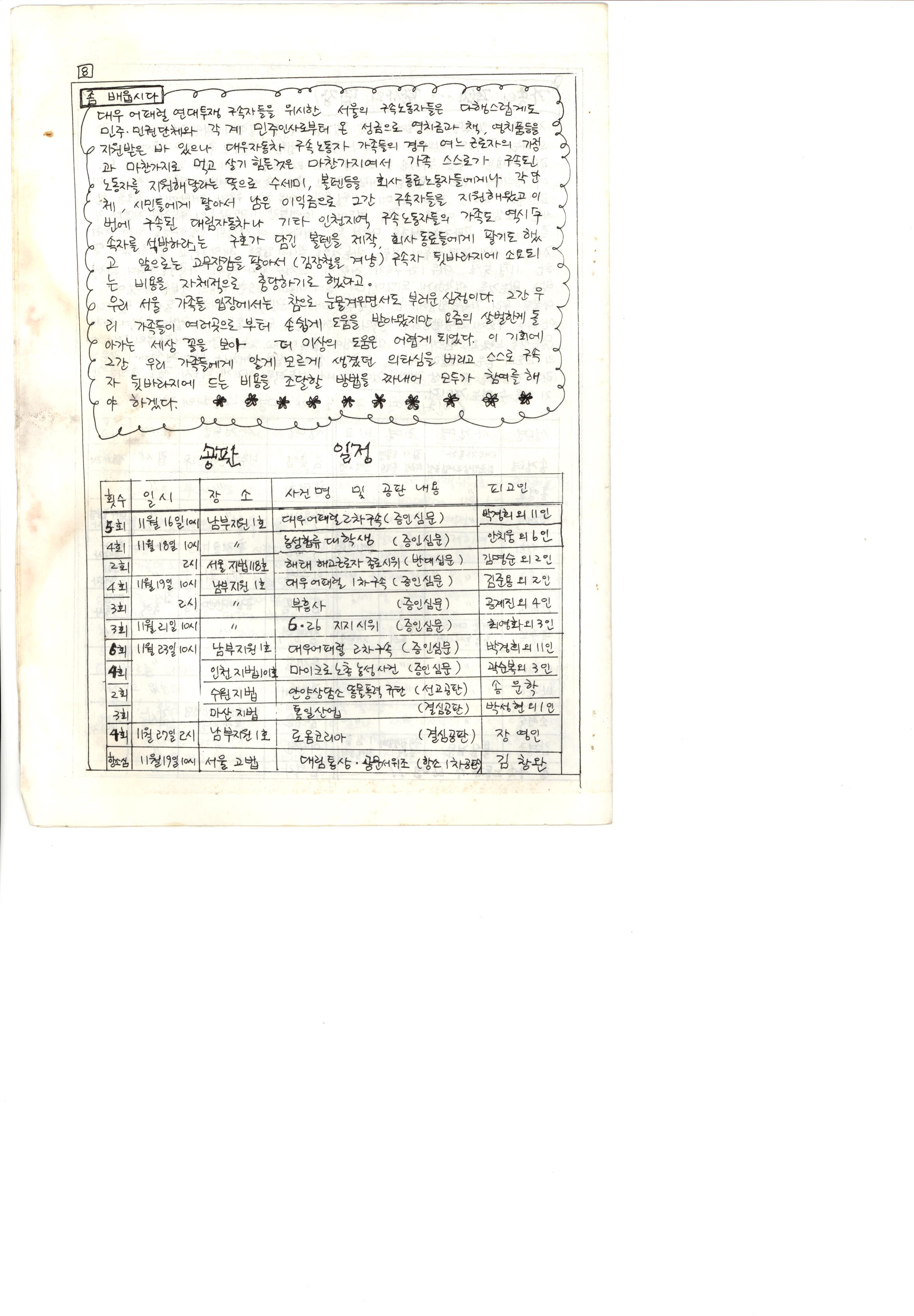 구속노동자 가족협의회 소식 8호