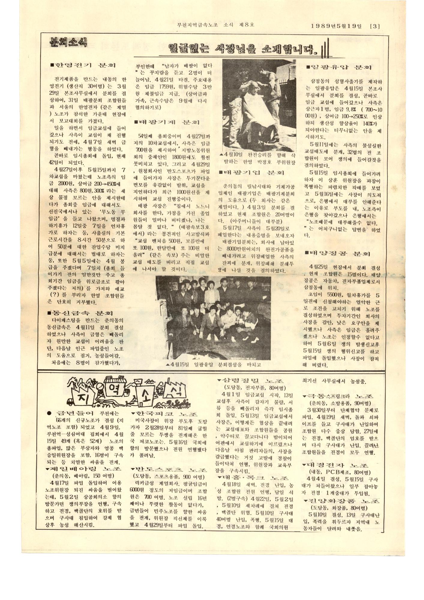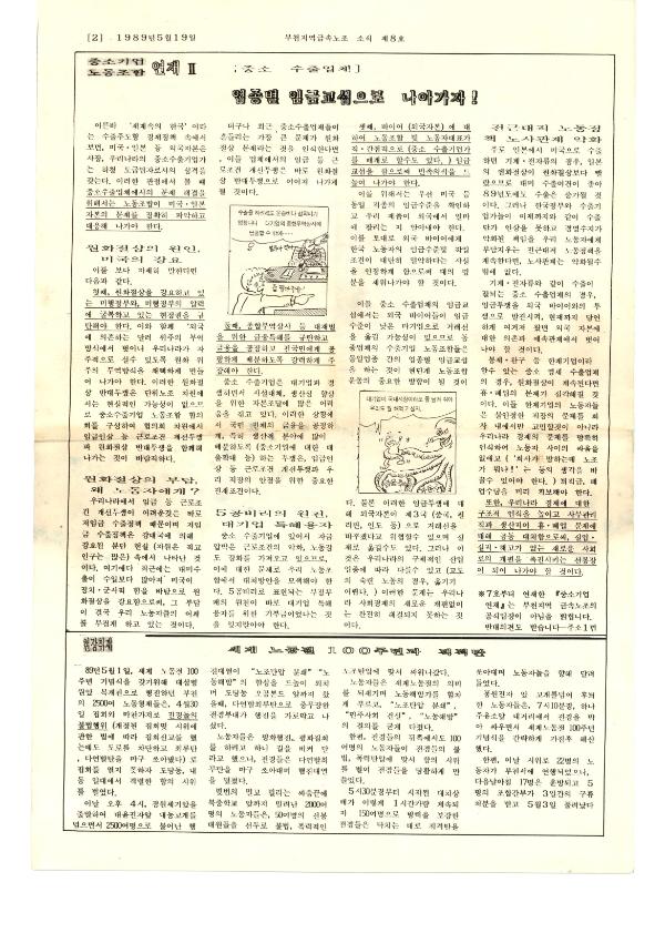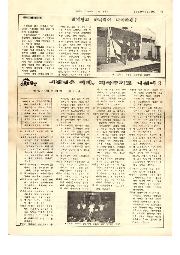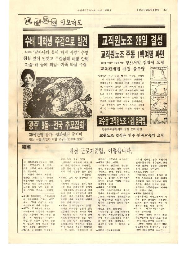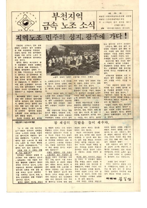 박스번호: D021 목록번호: 131015021 내용: 지역노조 민주의 성치, 광주에 가다. 참 세상의 깃발을 높이 세우자. 수배 대학생(이철규 열사) 주검으로 발견. 개정 근로기준법 이렇습니다.
