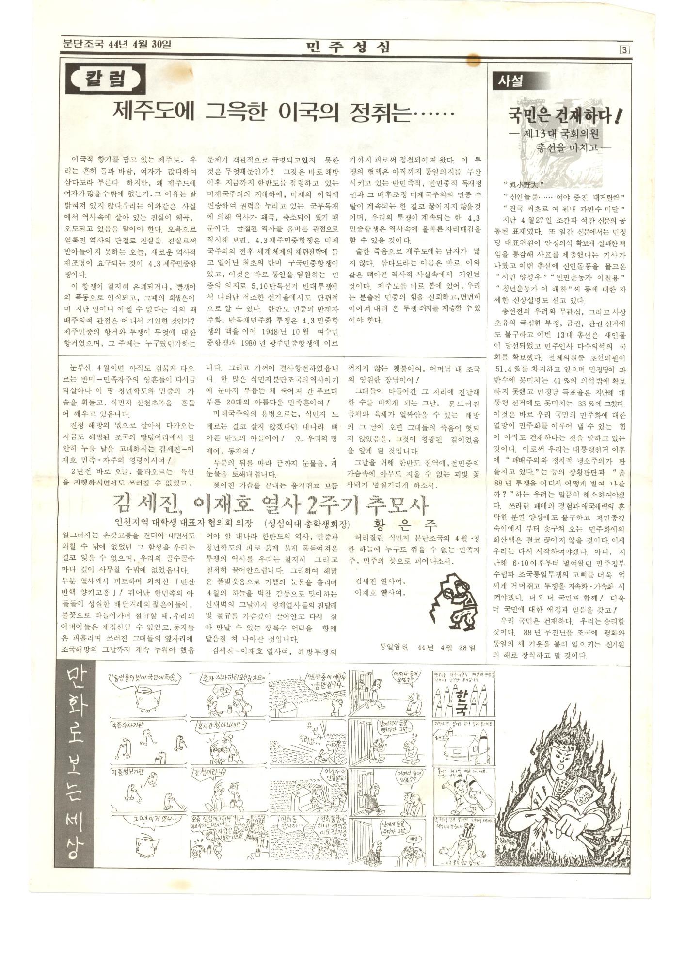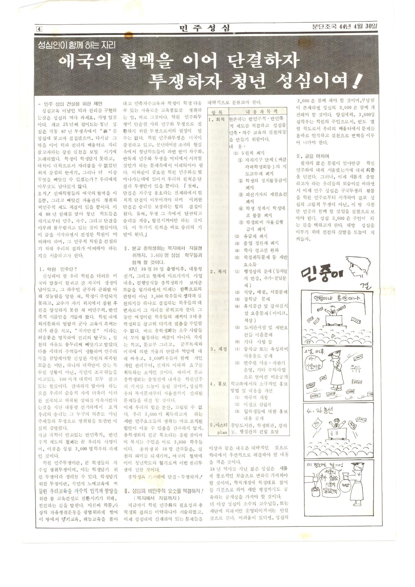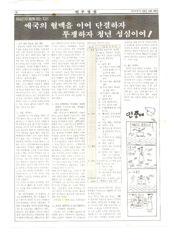 박스번호: D021 목록번호: 131015022 내용: 들어라! 어머니 대지위의 뜨거운 함성을, 이세진 이세호 열사 2주기 추모사. 애국의 혈맥을 이어 단결하자 추쟁하자 청년 성심이여!