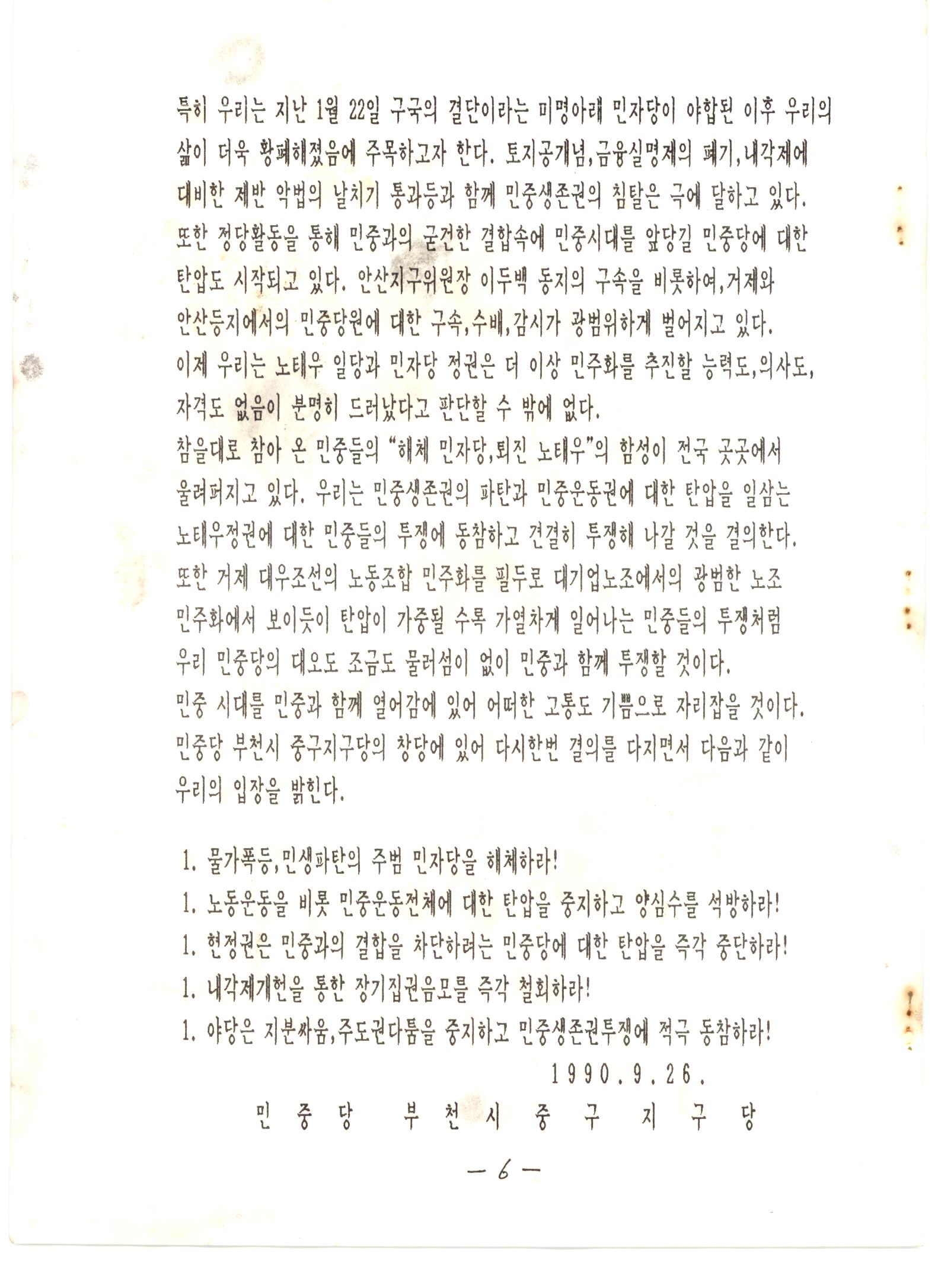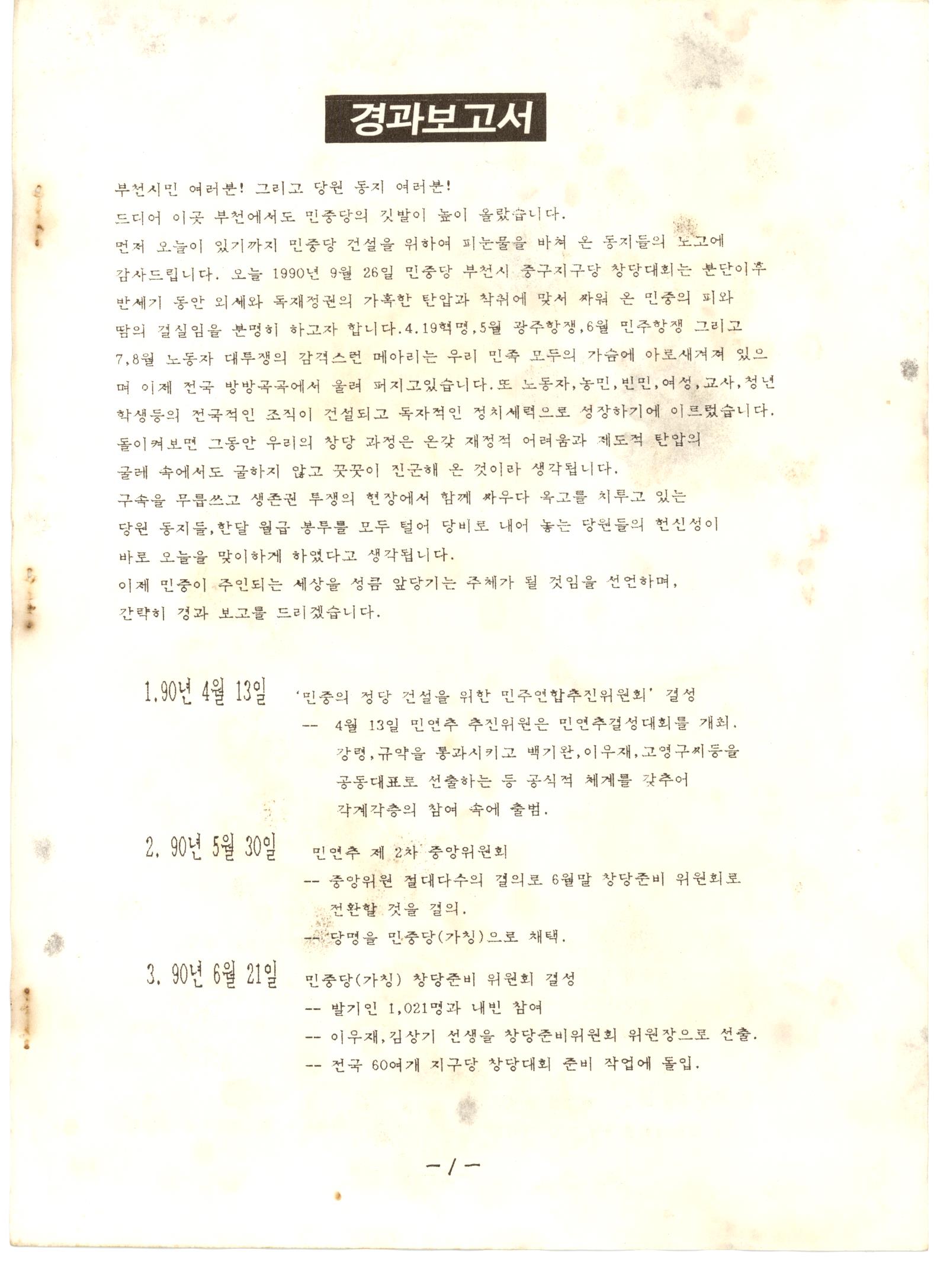 88년도 사회와 노동계의 변화 및 간부 대의원의 자세