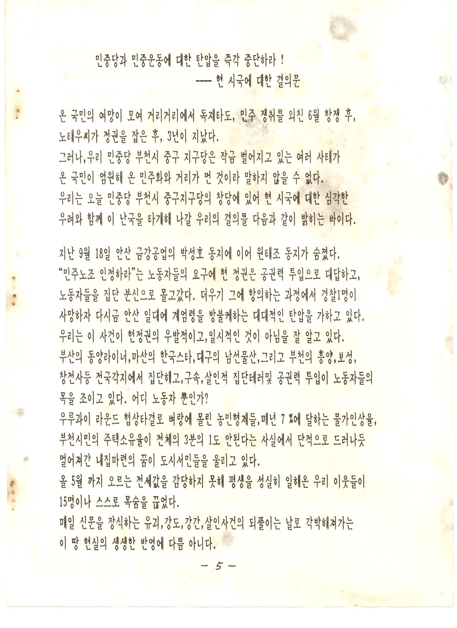 성명서 우리들의 노동현실을 외면하고 기업주의 사주에 협력하고 옹호하는 현 정권의 노동운동 탄압을 외면할 수 없기에
