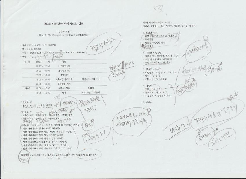2014년 7월 4일~5일 공주한옥마을에서 있었던 제2회 대한민국 아키비스트 캠프의 진행 점검 문서. 일시, 장소 및 진행 프로그램, 기조발표자와 개인발표자 명단, 아키비스트캠프 추진단의 담당 역할 등이 있다.