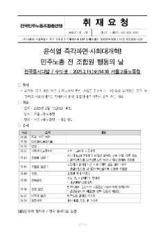 [취재요청] 2.15 윤석열 즉각파면! 사회대개혁! 민주노총 전 조합원 행동의 날
