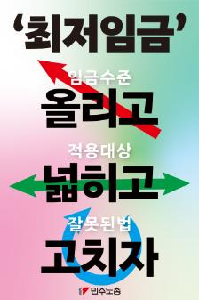 민주노총이 2025년 최저임금 인상 투쟁을 위해 제작한 웹자보 시안들이다. 2026년 최저임금을 11,500원으로 인상하고, 특수고용 및 플랫폼 노동자에게도 최저임금을 보장하며, 업종별 차별 적용을 폐지해야 한다고 주장한다. 최저임금 인상을 통해 노동자들의 삶을 개선하고, 소상공인 경제를 활성화하며, 내란세력을 청산해야 한다고 강조한다. 최저임금 인상 투쟁에 대한 민주노총의 결의를 보여준다.