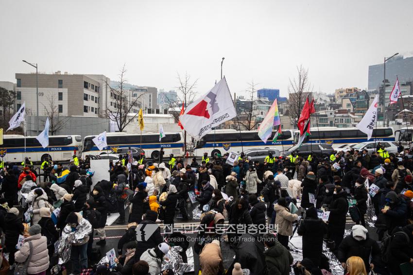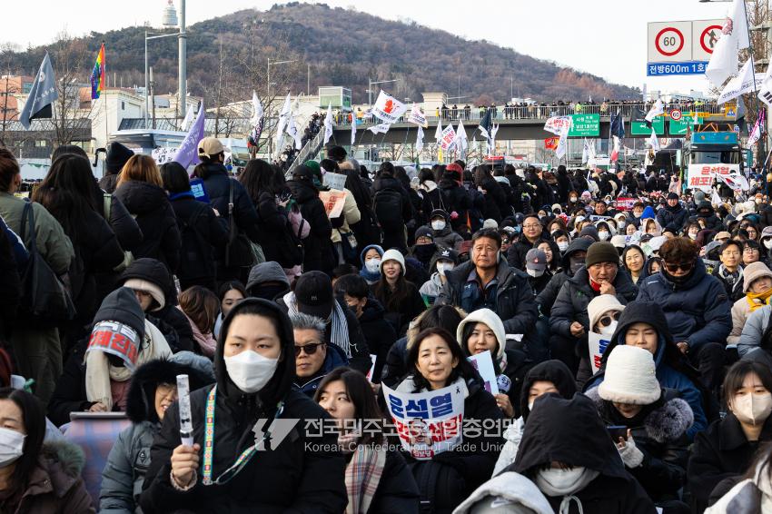 경찰과 공수처는 하루 전날, 대통령 경호처의 저항에 부딪혀 윤석열을 체포하지 못했다. 경호처 인원이 500여 명으로 알려진 가운데 경찰과 공수처는 달랑 150명을 동원해 관저를 찾았던 것으로 알려졌다. 민주노총은 “윤석열을 즉각 체포하고 구속하라”고 외치며 대통령 관저 방향으로 길을 열기 위한 행진을 진행했다.