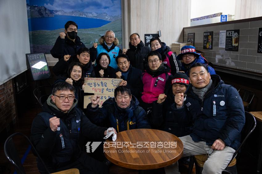 공수처가 윤석열 체포에 실패하고 돌아선 상황에서 민주노총은 치열한 체포・구속 투쟁에 돌입했다. “식민지배 철폐에 나섰던 독립군의 심정으로, 독재 멈추기에 나섰던 시민군의 심정”으로 투쟁을 결의하고 집회신고가 된 한남대로에 눌러 앉았다. SNS에서 소식을 들은 시민들이 ‘남태령 대첩을 이어가겠다’ ‘남태령에서 진 빚을 갚겠다’라며 한남대로에 모여들었다. 또 전국 각지에서 민주노총과 시민들을 후원하기 위한 각종 음식과 물품이 한남대로에 도착했다.