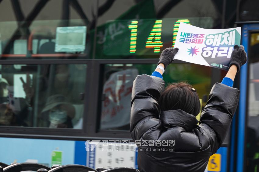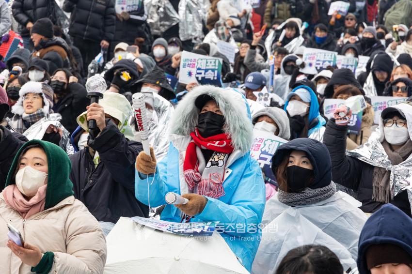 8년 전 박근혜 퇴진투쟁 당시 시민들이 부담스러워 할 수 있어 조끼도 벗고 깃발도 내리라고 했던 민주노총이었으나, 2025년 1월 한남대로를 찾은 시민들은 전과 달리 민주노총을 연호했다. 자유발언에 나선 이들은 발언에 앞서 “투쟁!”으로 인사를 건넸다. “(윤석열 퇴진 뒤) 여러분이 지지하는 정당이 정권을 잡아도 민주노총은 데모를 하고 있을 수 있다. 그렇다면 노동권이 보장되지 않았거나 노동자・국민이 주인되는 세상이 아직 오지 않았기 때문”이라던 이양수 민주노총 부위원장의 발언도 SNS에서 널리 회자됐다.