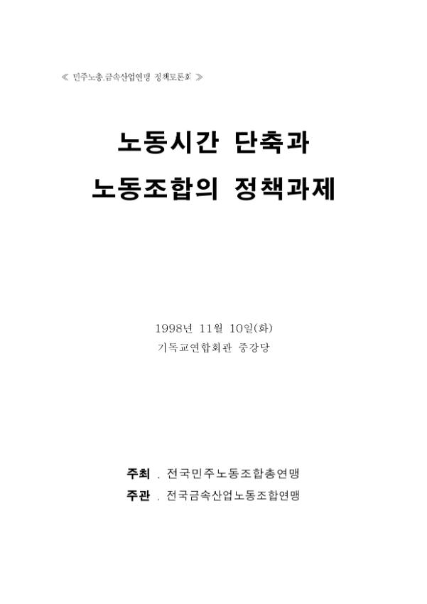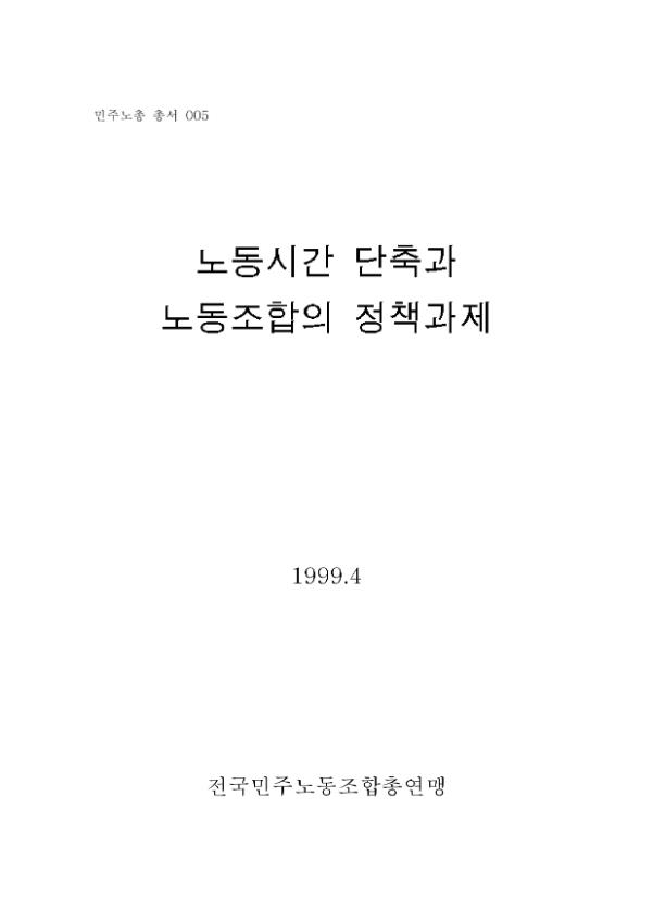 [총서] [총서5] 노동시간단축과 노동조합의 정책과제(1999.4)
