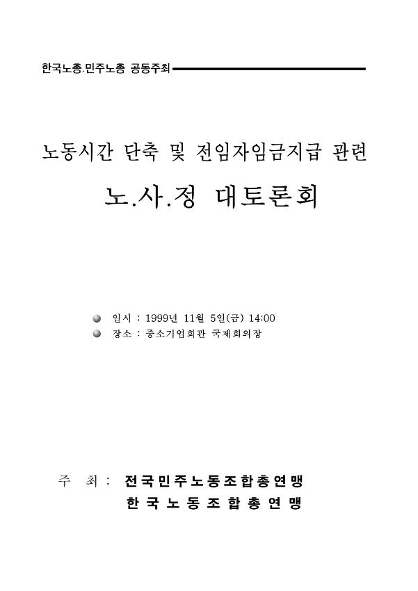 [자료집] 노동시간단축 및 전임자임금지급 관련 노.사.정 대토론