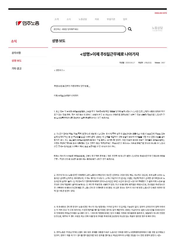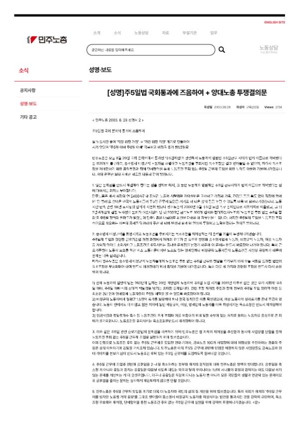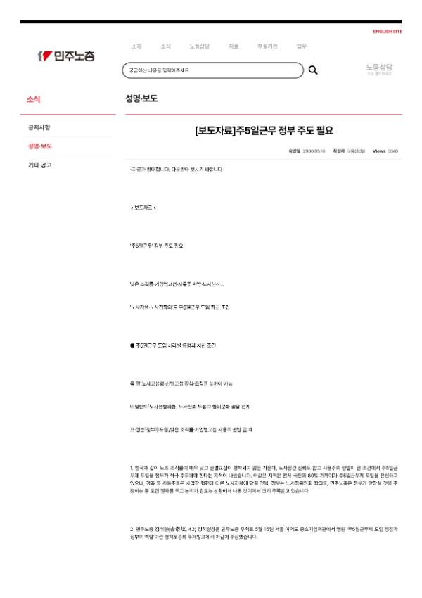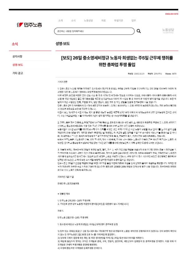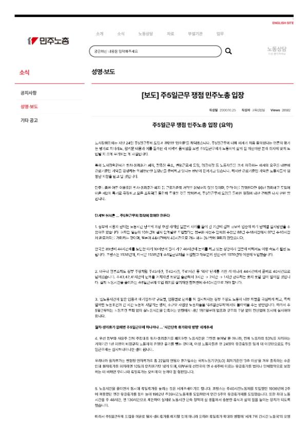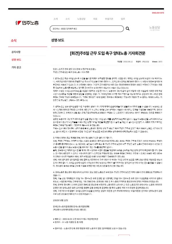 [보도자료] 주5일근무 쟁점 민주노총 입장