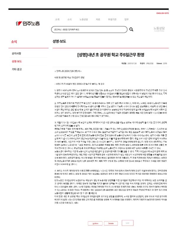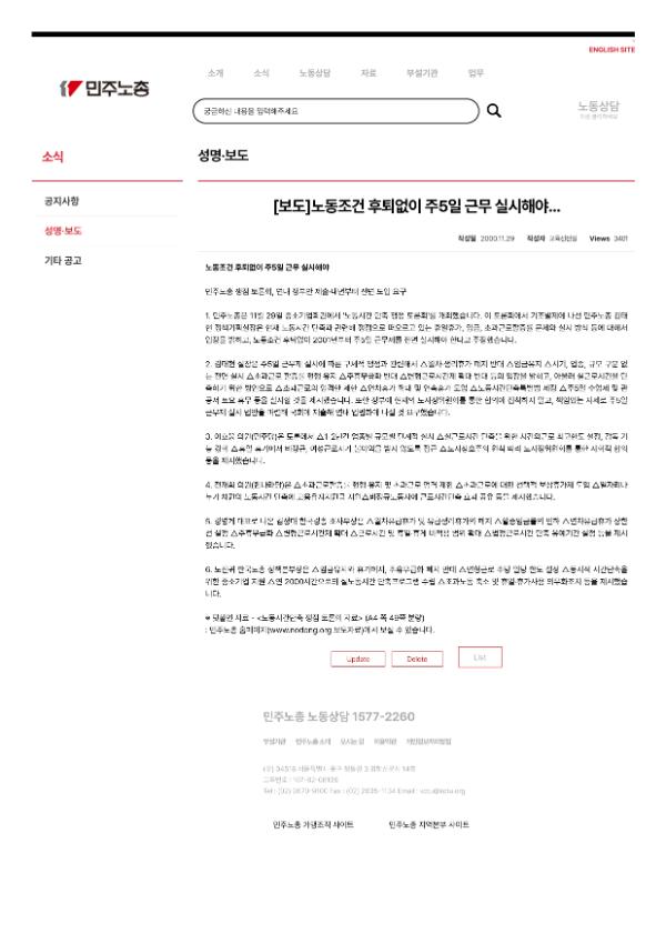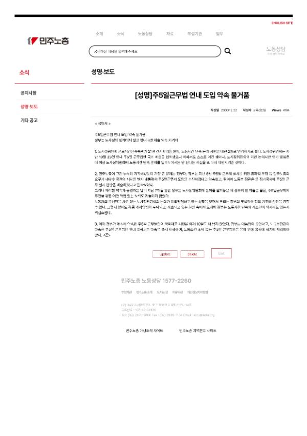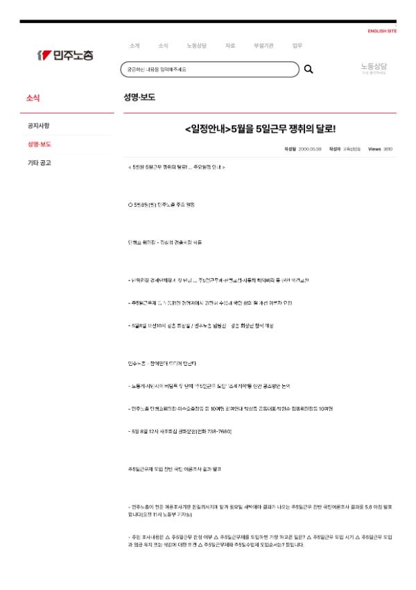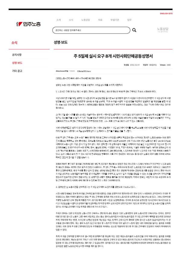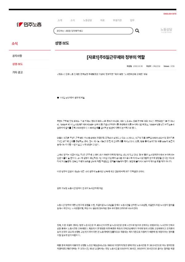 [보도자료] 주5일근무 쟁점 민주노총 입장