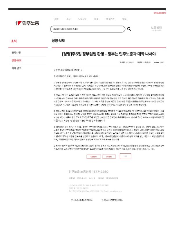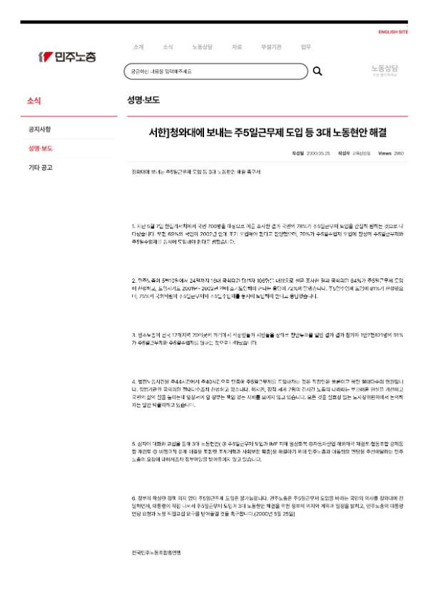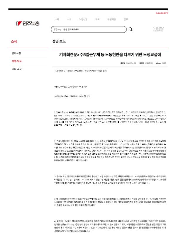 [기자회견문] 주5일근무제 등 노동현안을 다루기 위한 노정교섭에 정부는 진지하게 나서야 합니다