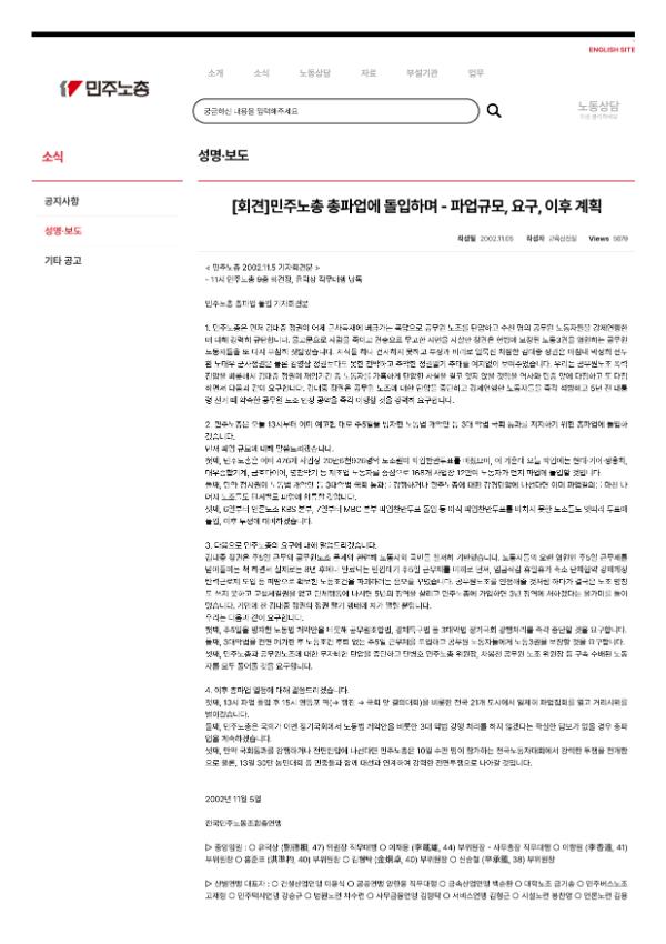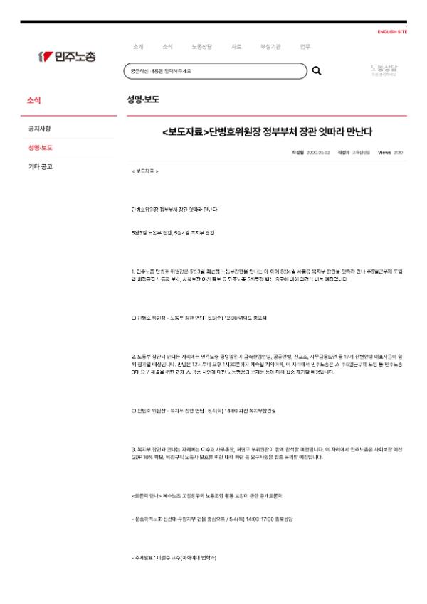 [보도자료] 민주노총 단병호위원장 정부부처 장관 잇따라 만난다
