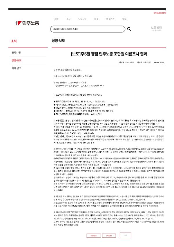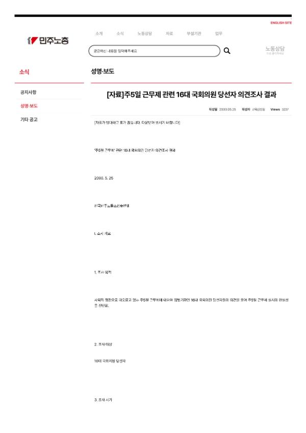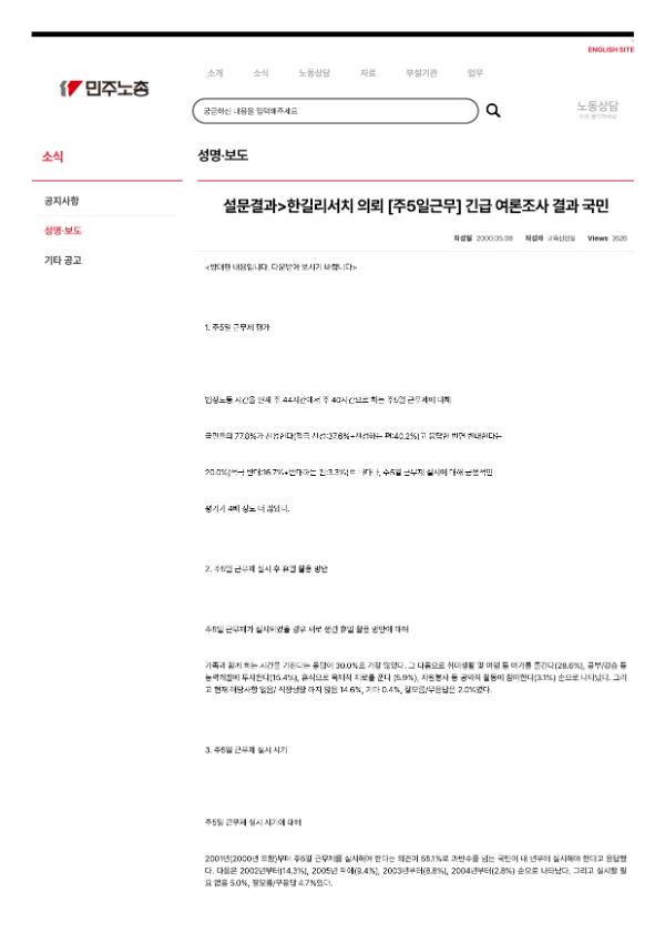 [보도자료] 주5일 쟁점 민주노총 조합원 여론조사 결과