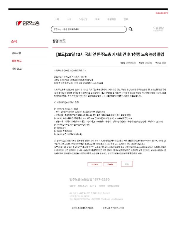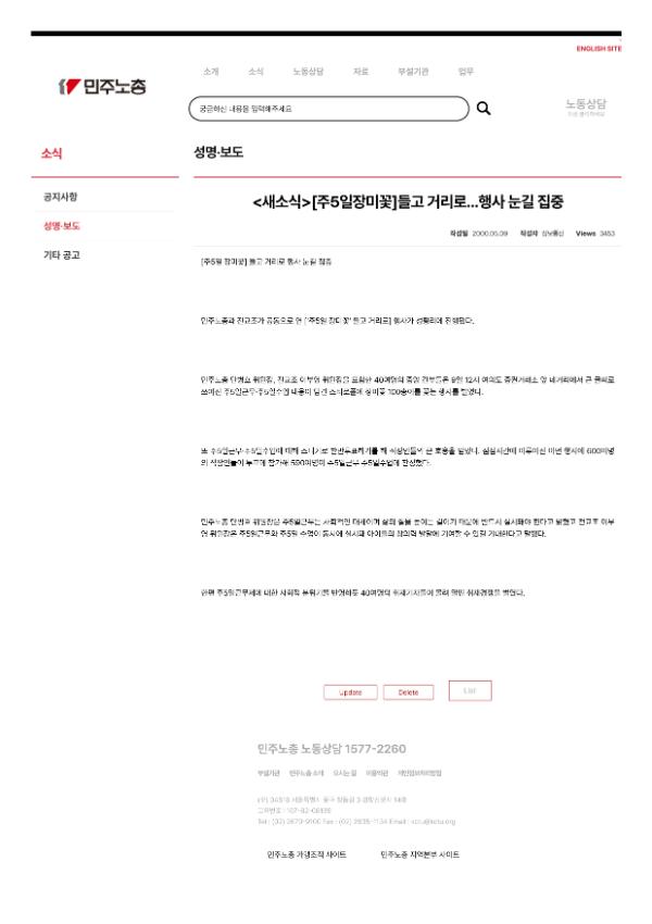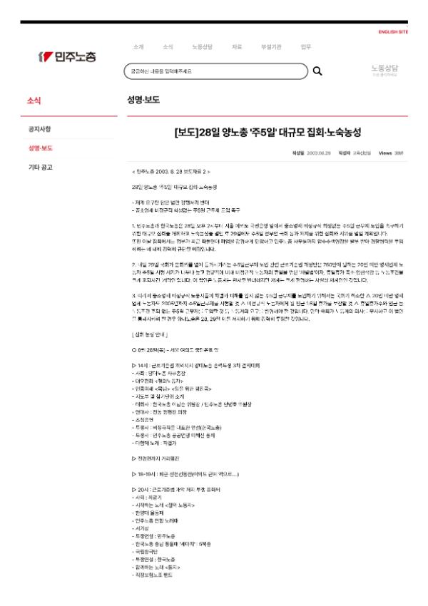 [보도자료] 민주노총 2만명 '주5일' 결의대회 마쳐