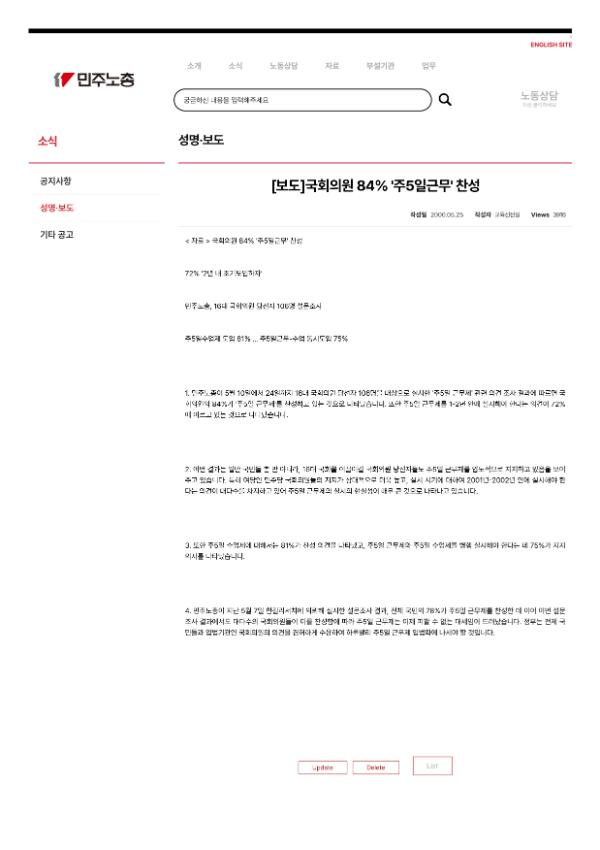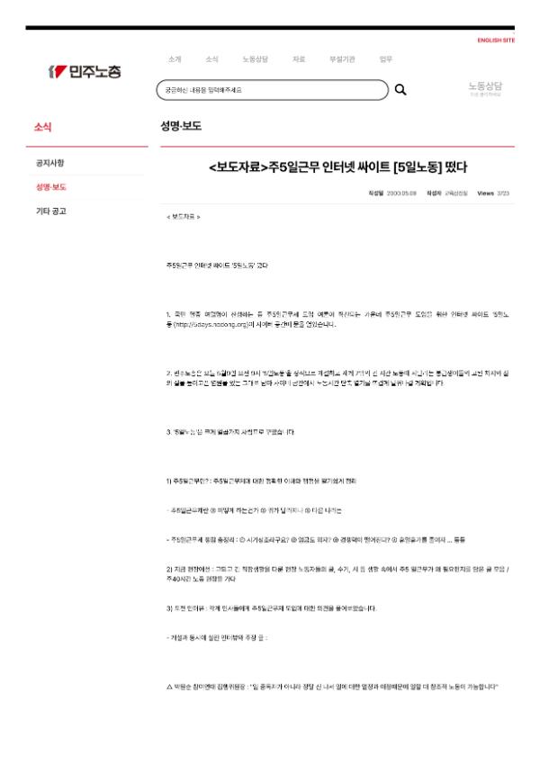 [보도자료] 주5일근무 인터넷 싸이트 [5일노동] 떴다