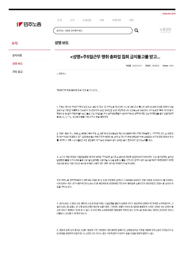 [성명] 주5일근무 쟁취 총파업 집회 금지통고를 받고