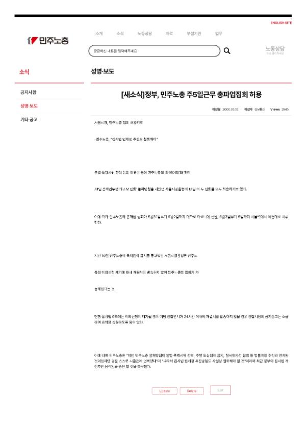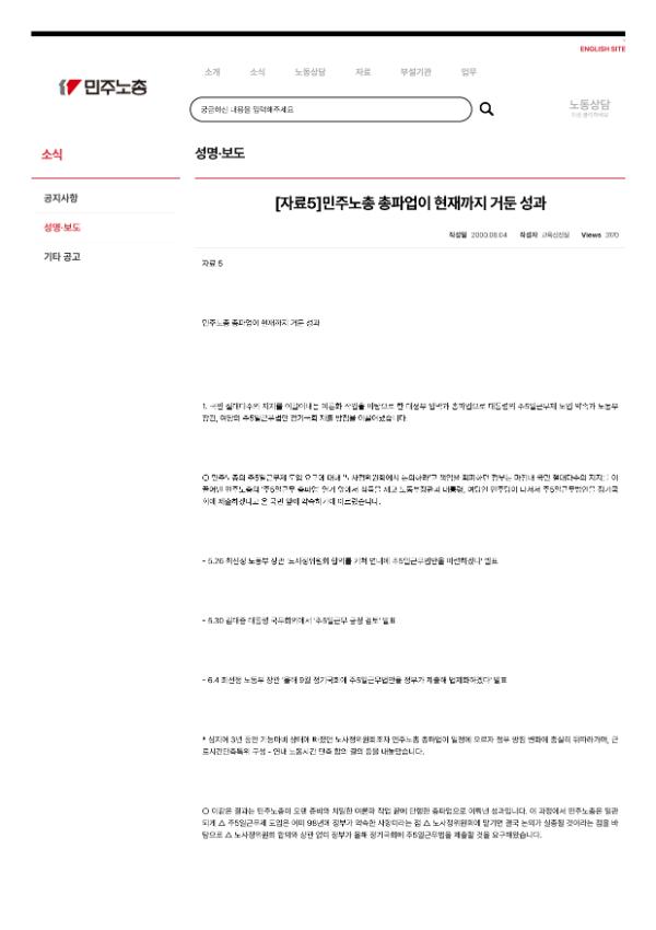[보도자료] 정부, 민주노총 주5일근무 총파업집회 허용