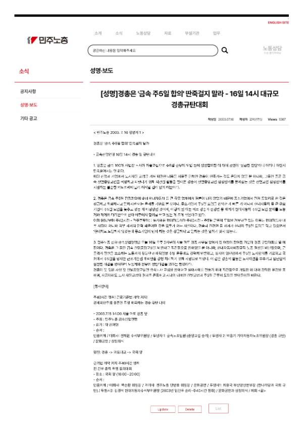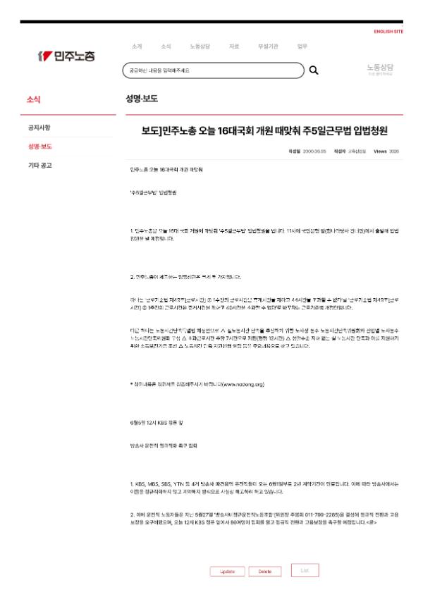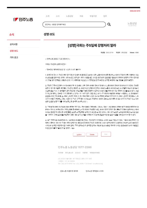 [보도자료] 민주노총 오늘 16대국회 개원 때맞춰 주5일근무법 입법청원