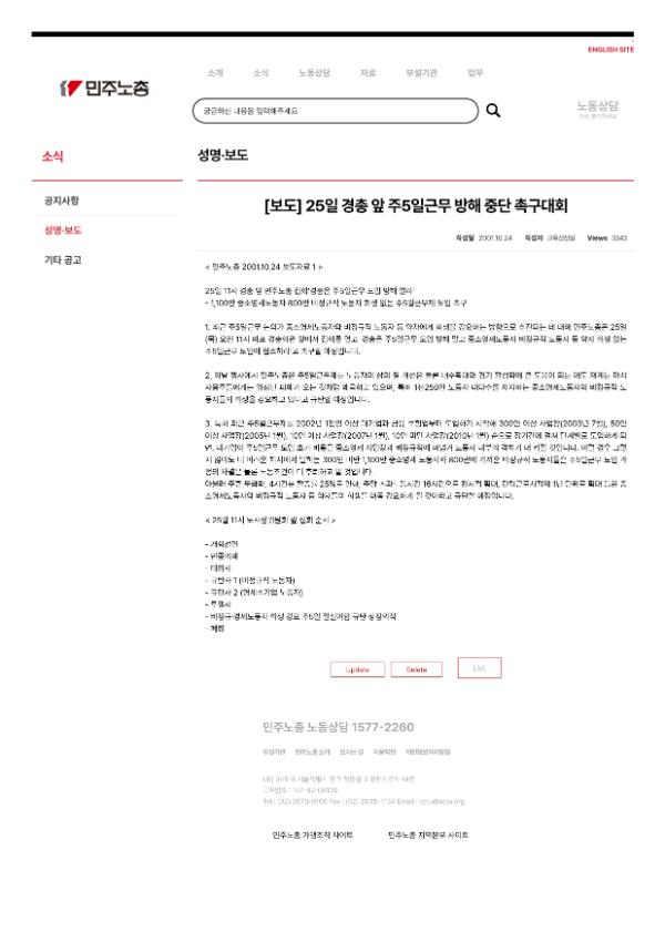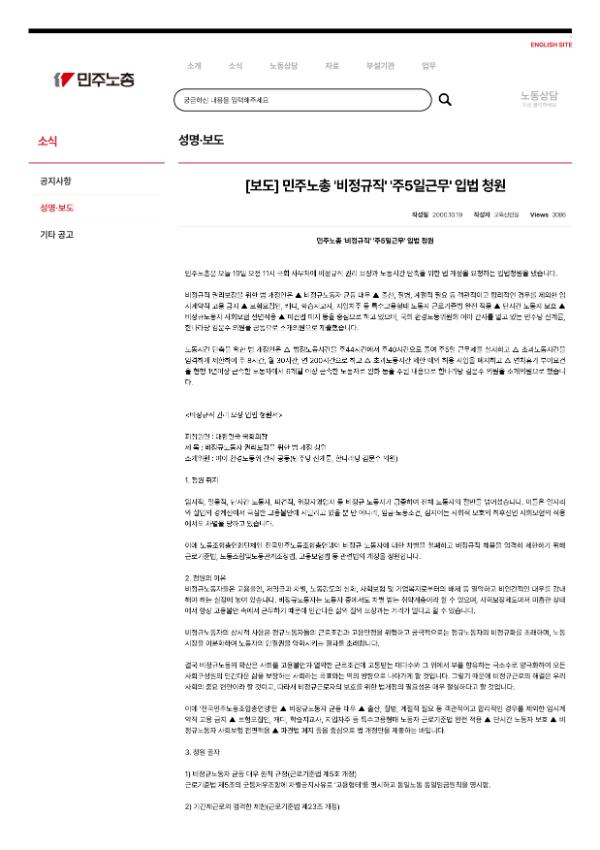 [보도자료] 민주노총 '비정규직' '주5일근무' 입법 청원