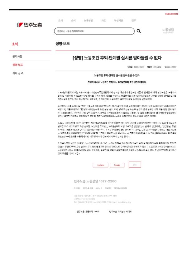 [성명] 노동조건 후퇴.단계별 실시론 받아들일 수 없다