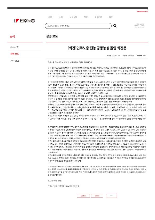 [기자회견] 민주노총 전농 공동농성 돌입 회견문
