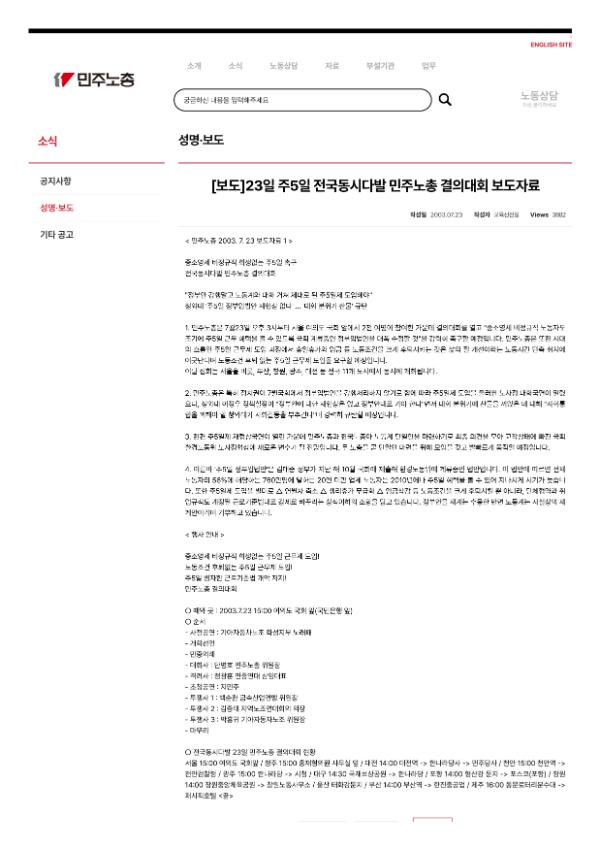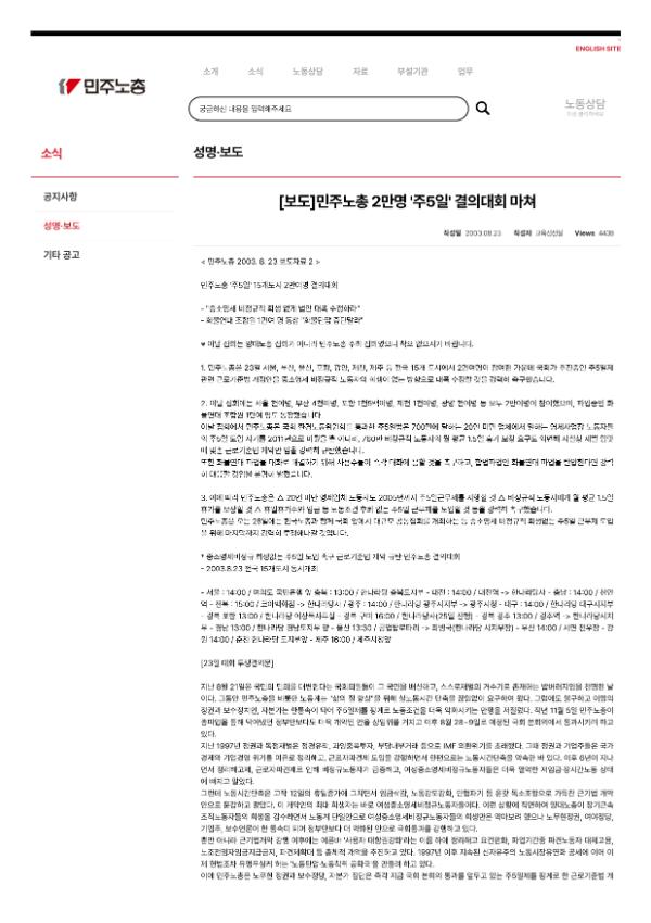 [보도자료] 23일 주5일 전국동시다발 민주노총 결의대회 보도자료