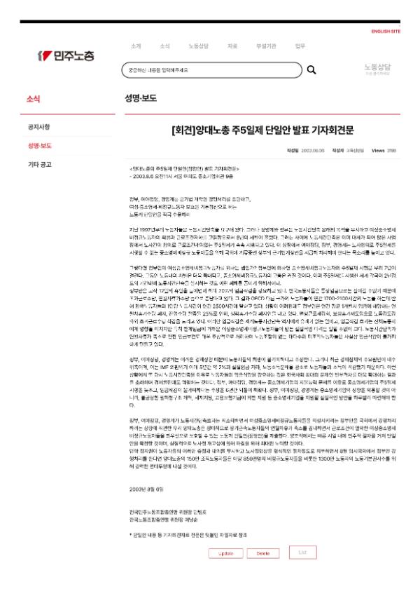 [기자회견] 양대노총 주5일제 단일안 발표 기자회견문