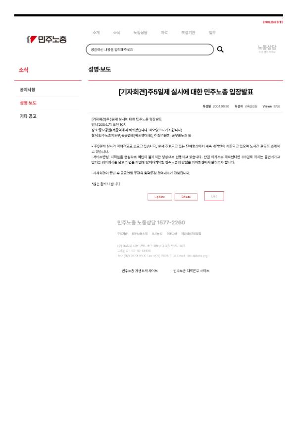 [기자회견] 주5일제 실시에 대한 민주노총 입장발표