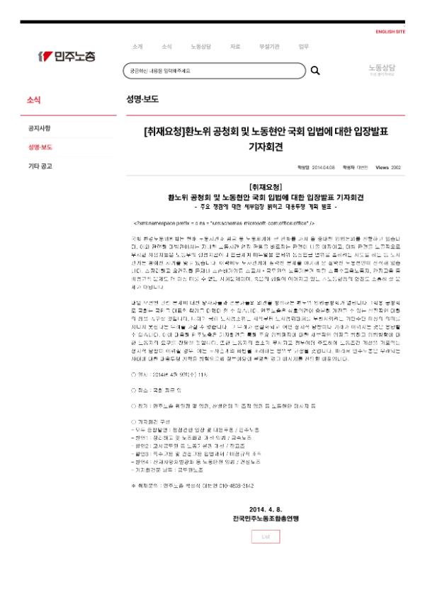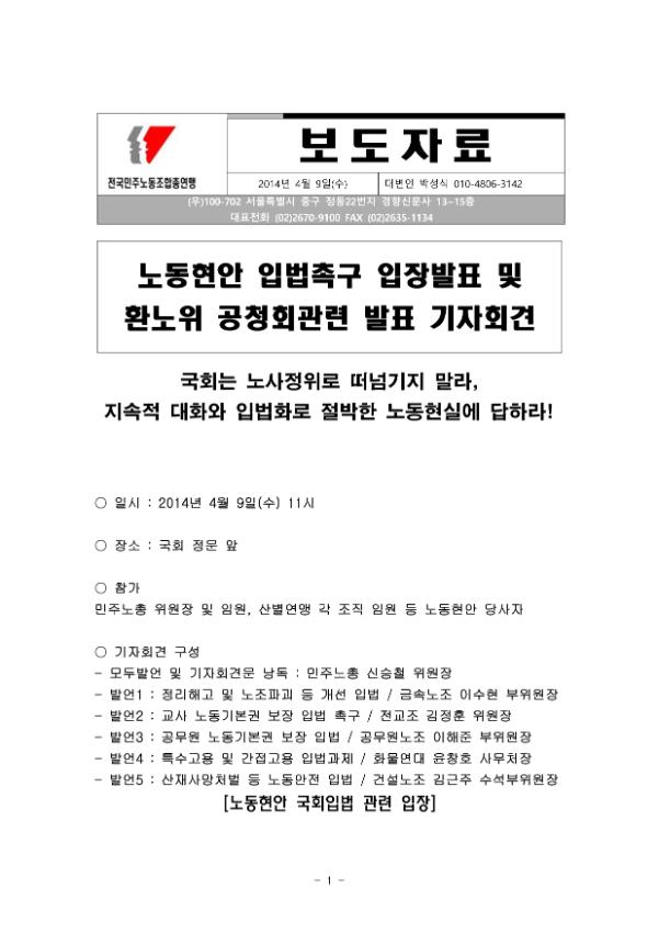 [취재요청] 환노위 공청회 및 노동현안 국회 입법에 대한 입장발표 기자회견