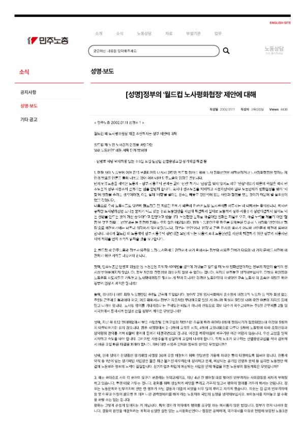 [성명] 정부의 '월드컵 노사평화협정' 제안에 대해