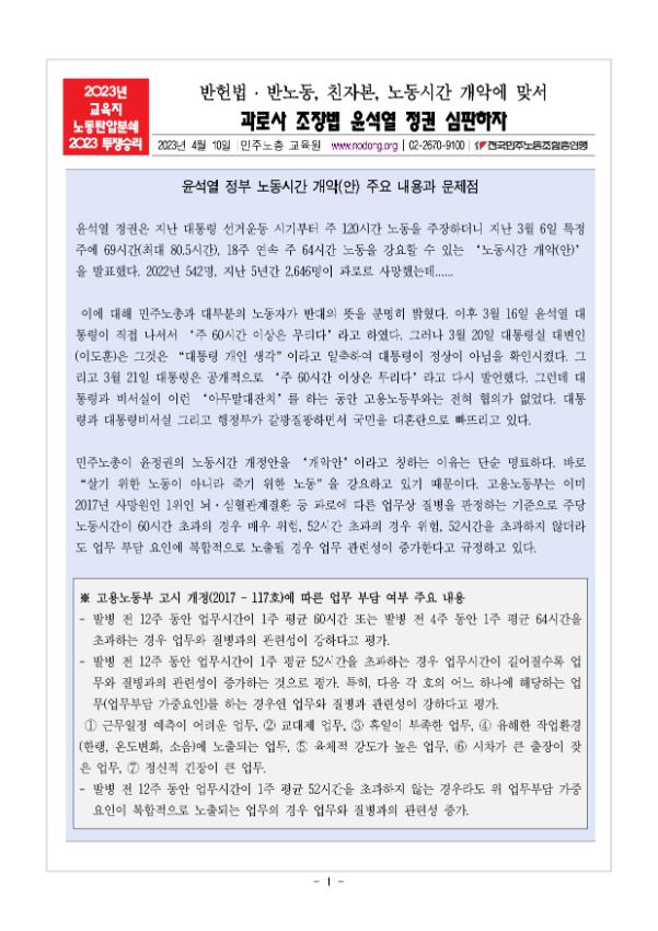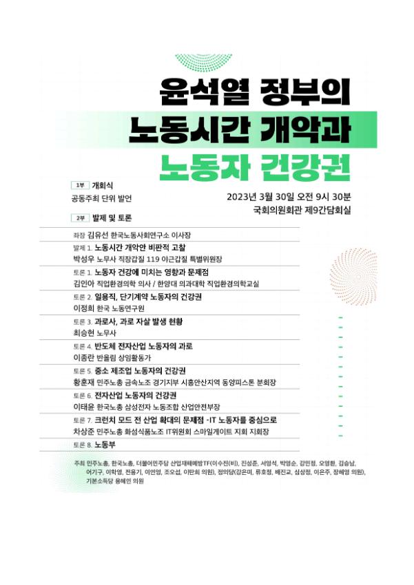 [자료집] 윤석열 정부의 노동시간 개악과 노동자 건강권