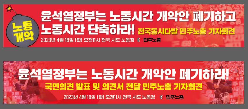[현수막] [선전물] 노동시간 개악안 폐기! 노동시간 단축! 전국동시다발 민주노총 기자회견 현수막 2종